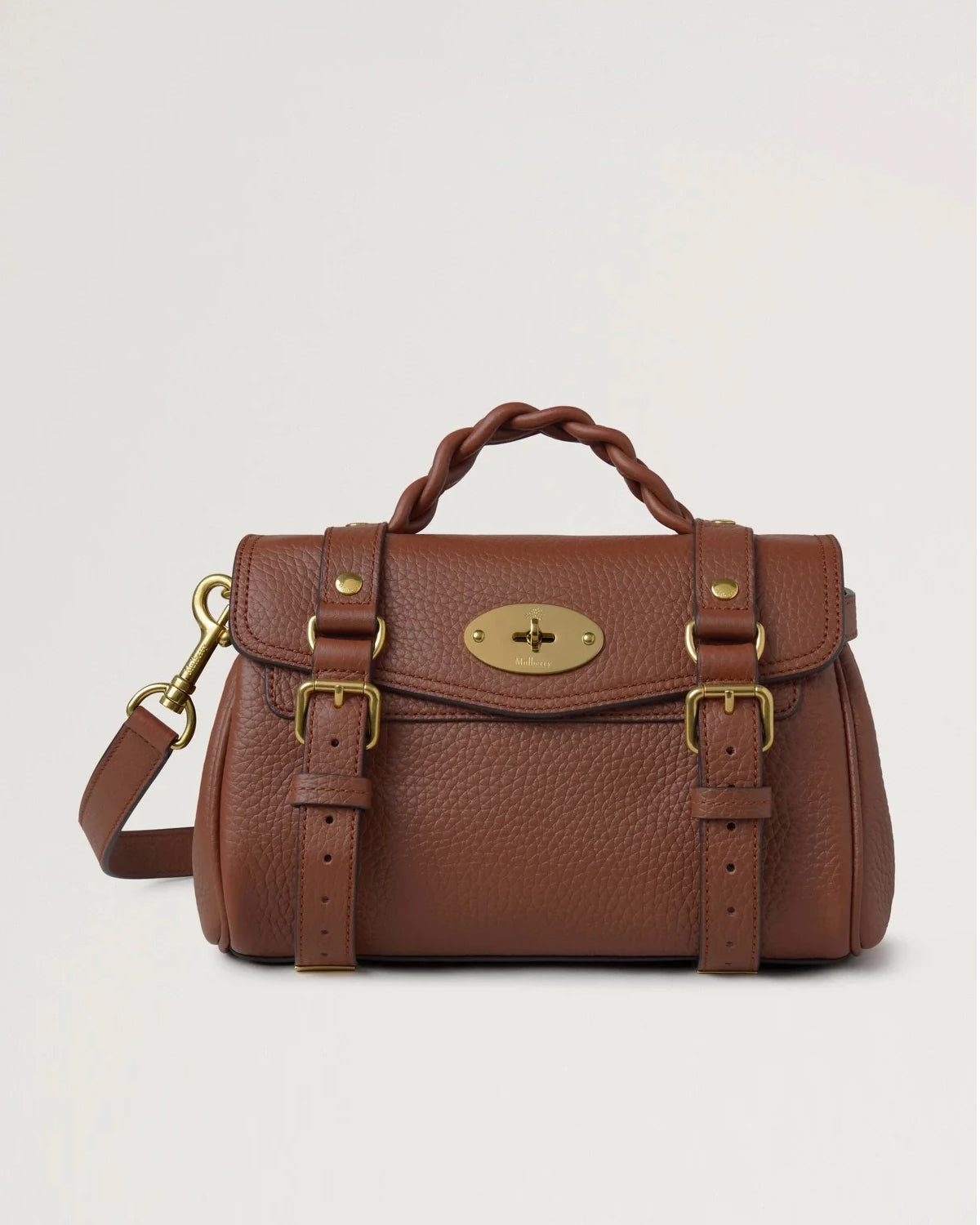 Mini Alexa Heavy Grain fra Mulberry forener karakteristiske elementer fra to av merkets ikoniske modeller – Bayswater og Elkington – i en kompakt satchel med et avslappet, men luksuriøst uttrykk. Vesken kommer med håndflettet topphåndtak, beltedetaljer og den signaturpregede Postman’s Lock-låsen. Den kan bæres både i hånden og crossbody takket være den justerbare og avtagbare skulderremmen. Et ryddig hovedrom med slip-lomme gir god plass til det viktigste du trenger i løpet av dagen.
