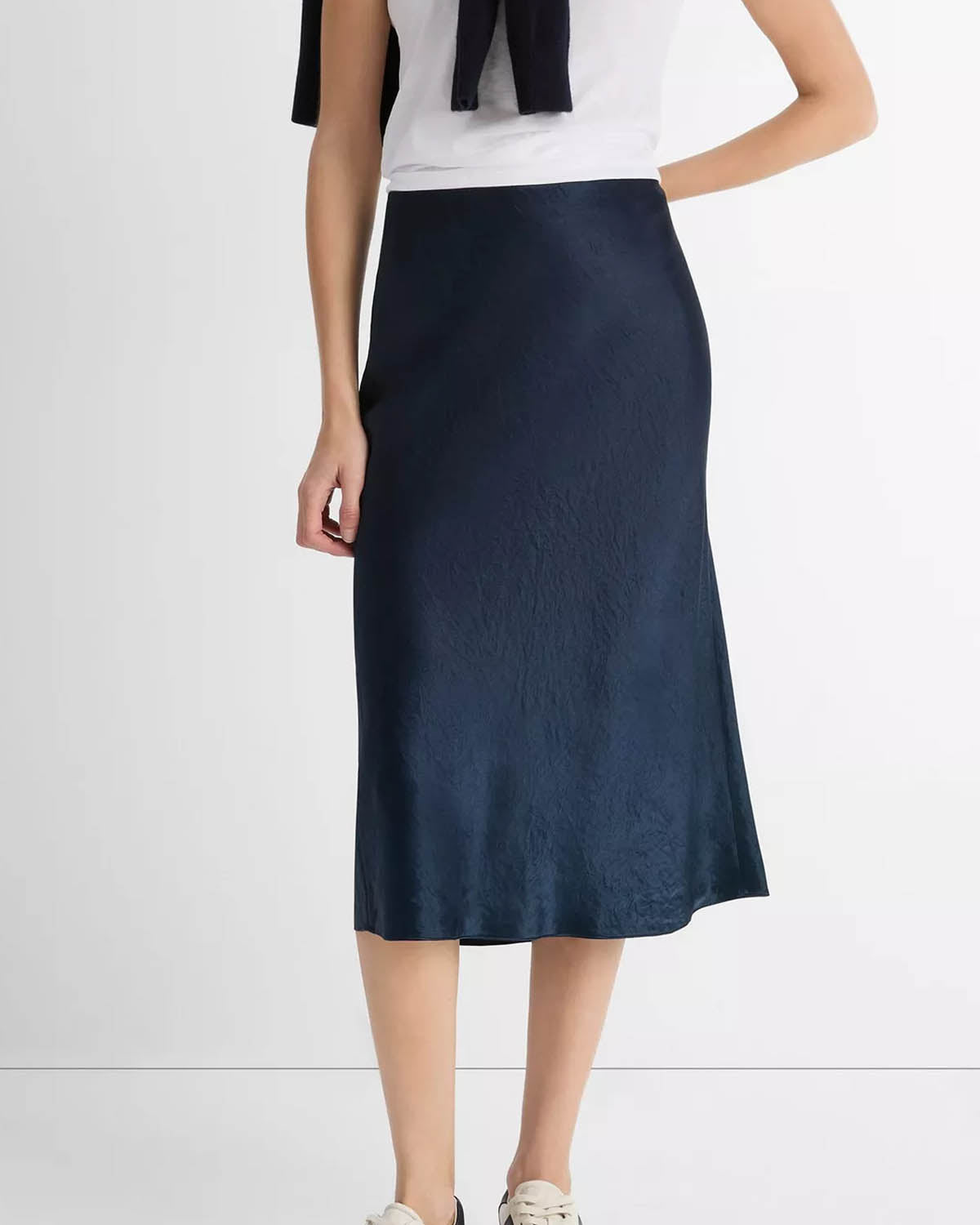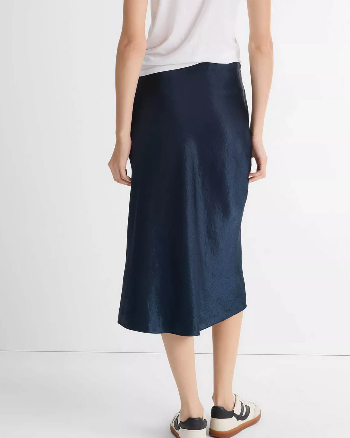 Et moderne skjørt fra Vince i skinnende japansk sateng.