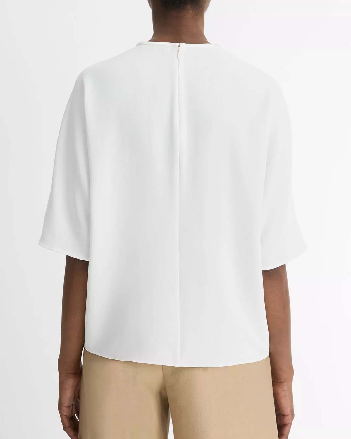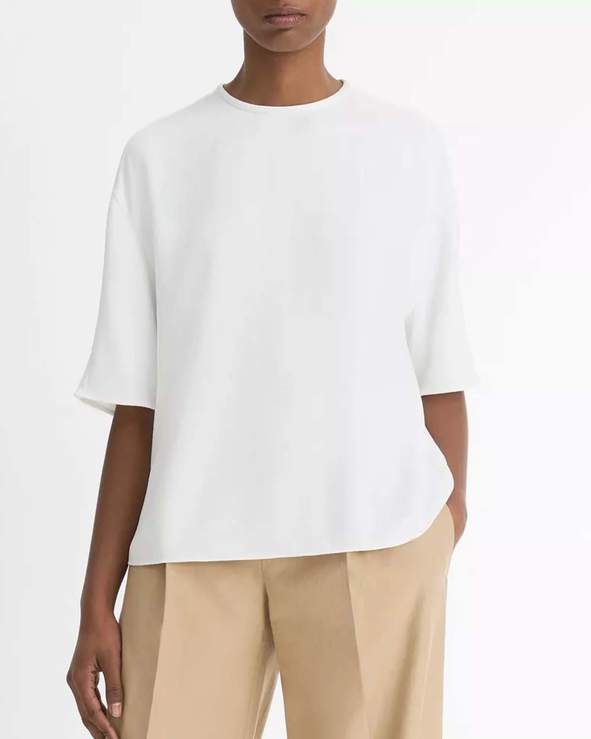 Avslappet t-skjorte fra Vince, laget av matt crepe og trimmet i elegant tonal sateng.