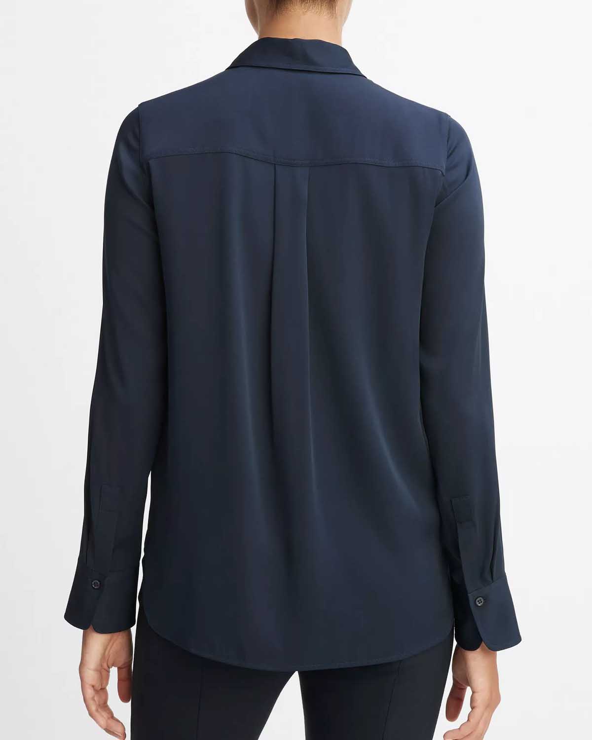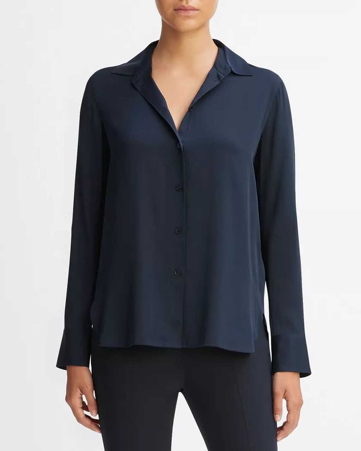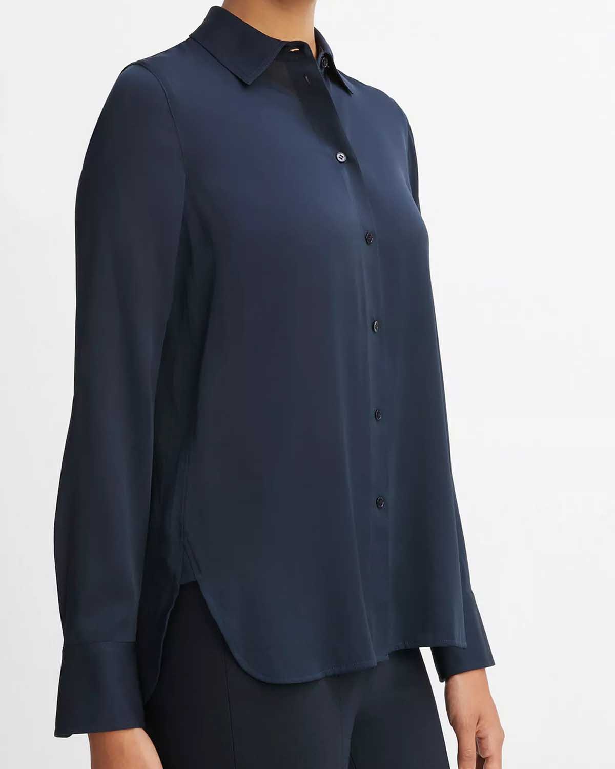 Denne slim-fit blusen fra Vince er kuttet av stretch-silke i den vakre fargen Costal Blue.