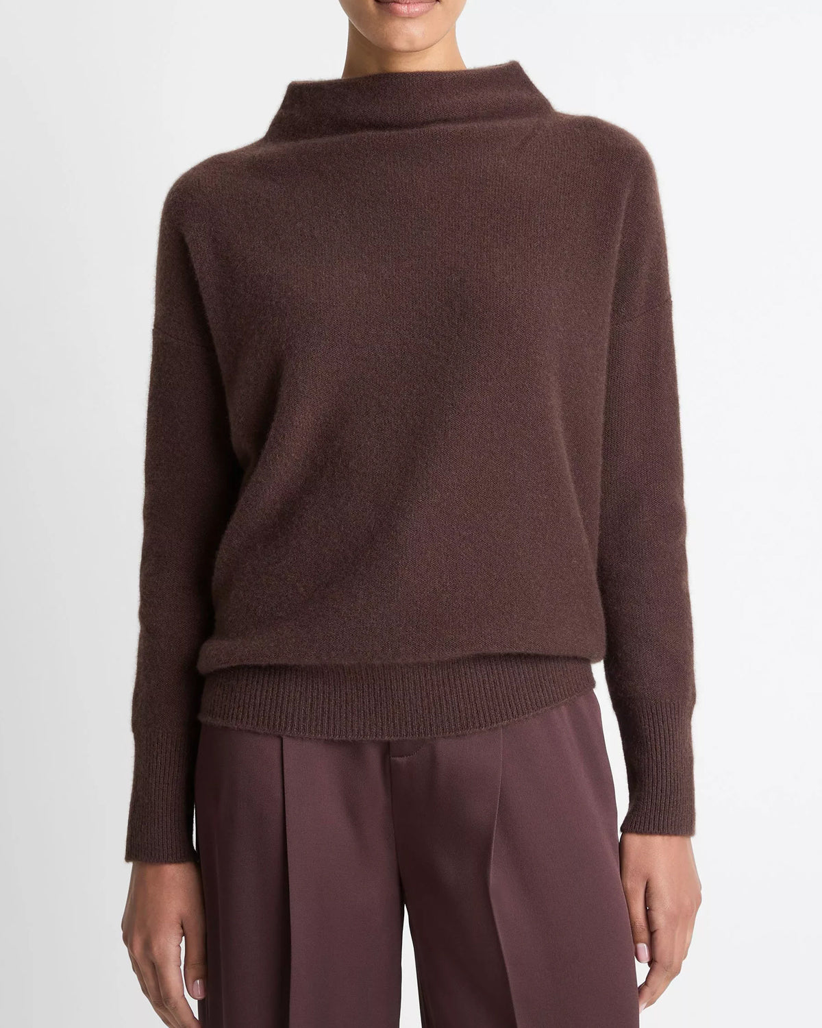 Laget av to-tråds kasjmirgarn som er kokt for ekstra varme og en elegant finish, har vår signaturgenser med myk traktutringning en avslappet kropp, senkede skuldre og tettsittende ermer.