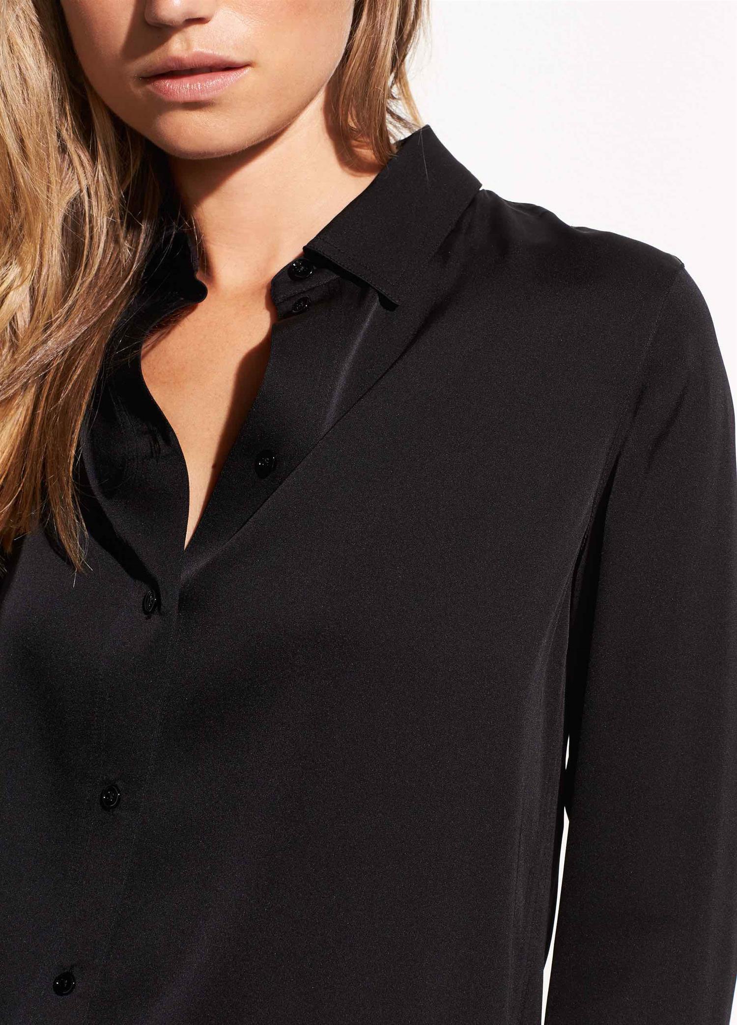 Slim Fitted Stretch-Silk Blouse er en sort silkebluse fra Vince med slim-fit passform.