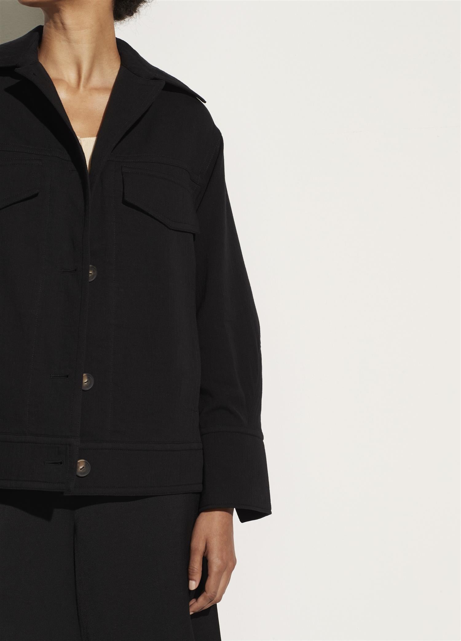 Casual Jacket fra Vince er modellert etter en oversized denimjakke, og kommer i en lett og strukturert bomullskvalitet fra Japan.