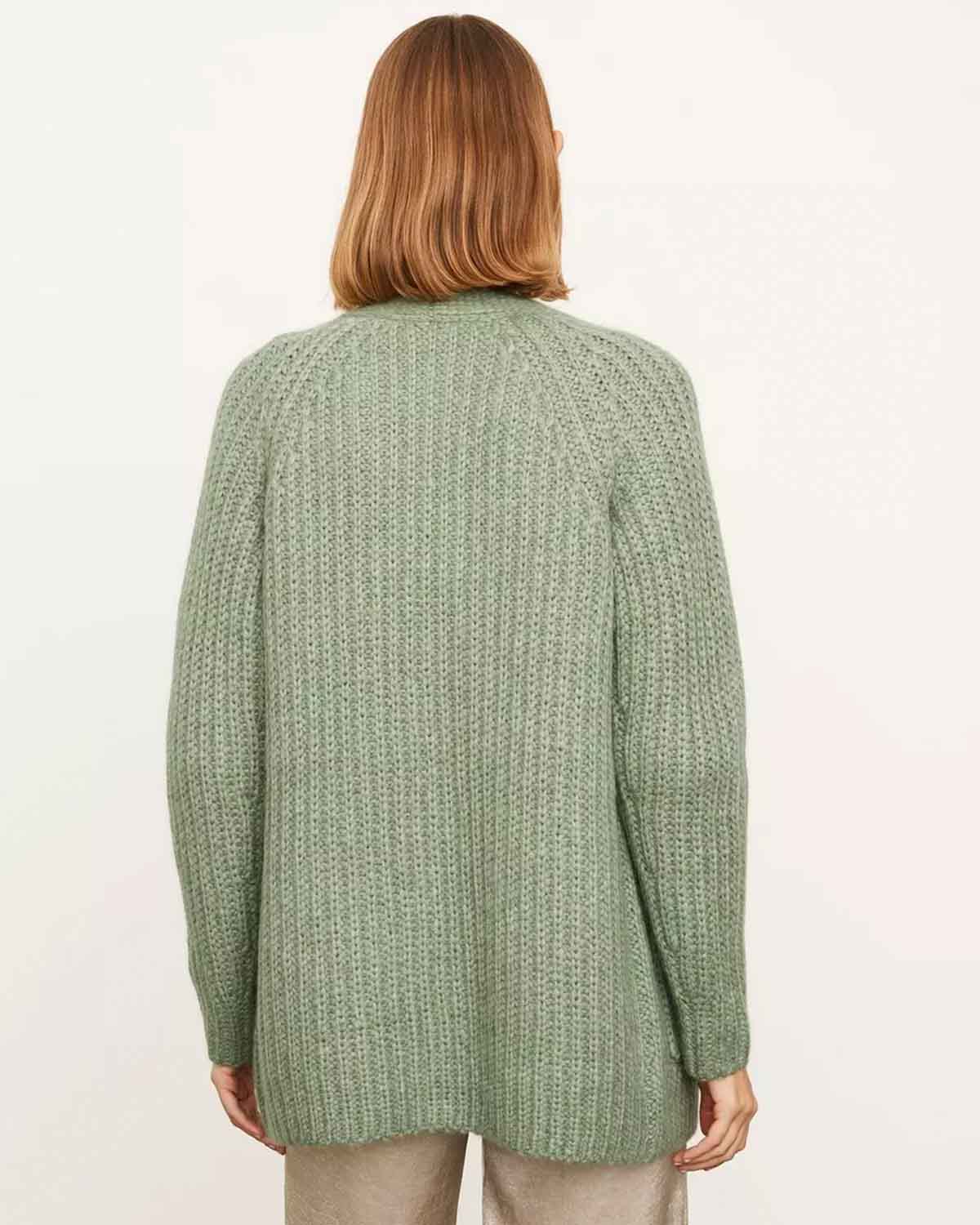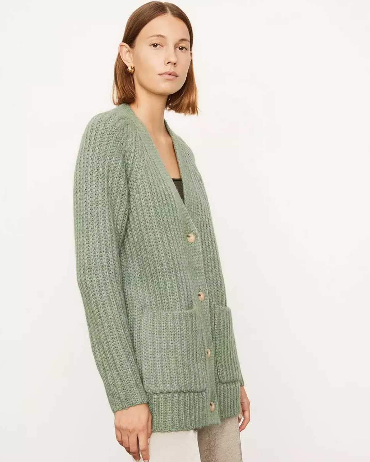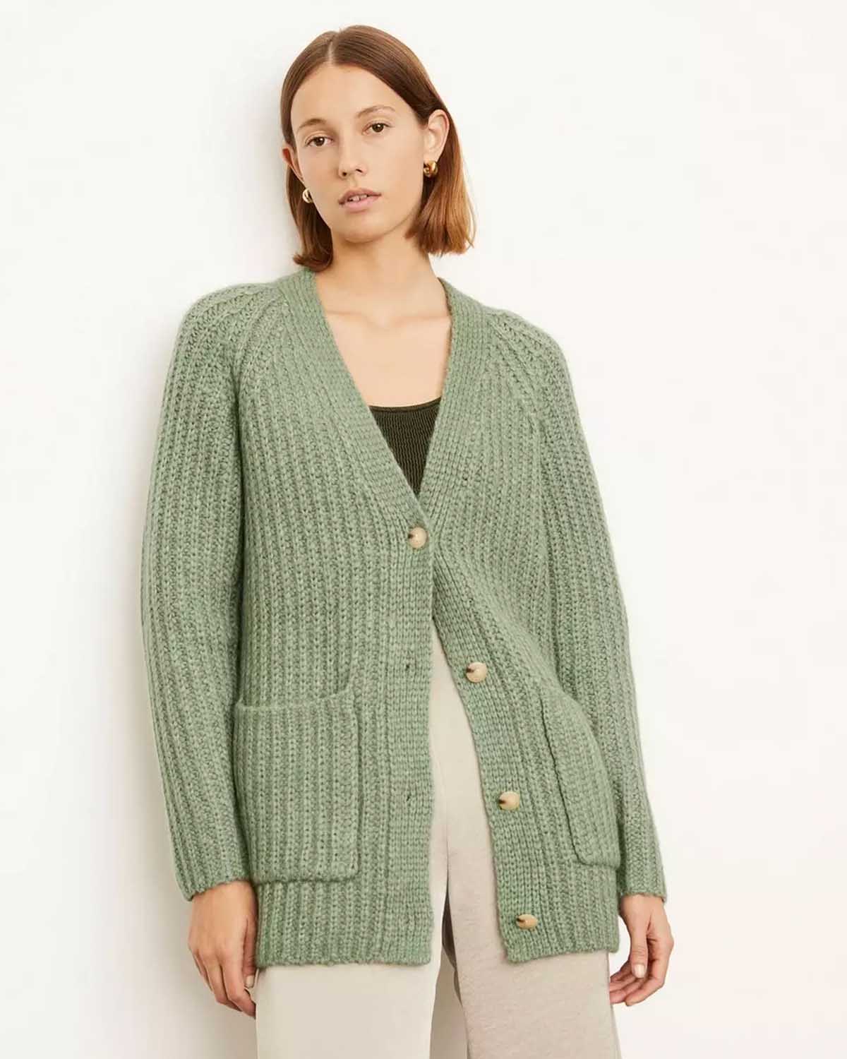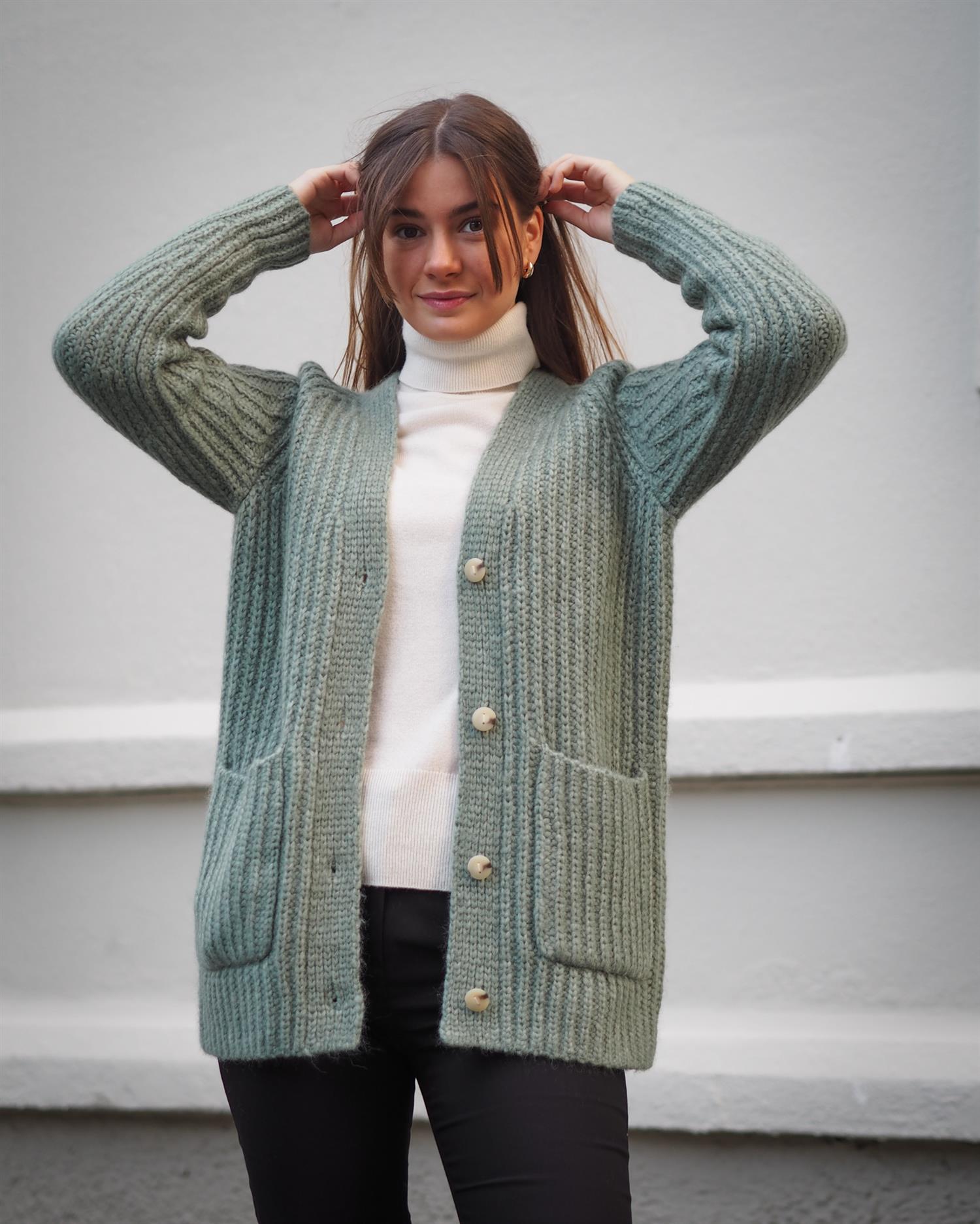 Grønn cardigan med god lengde fra Vince! Ribbed Pocket Cardigan kommer i en nydelig blanding med alpakka og merinoull og har knapper foran samt praktiske lommer i sidene. Strikkejakken er like fin over sommerkjolen som til vinterantrekket.