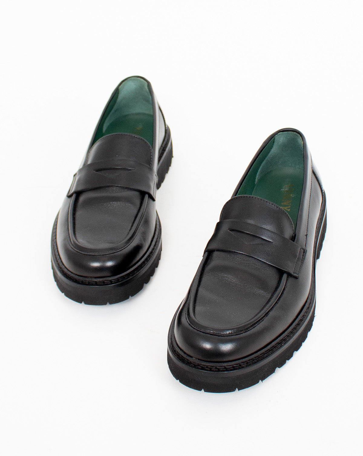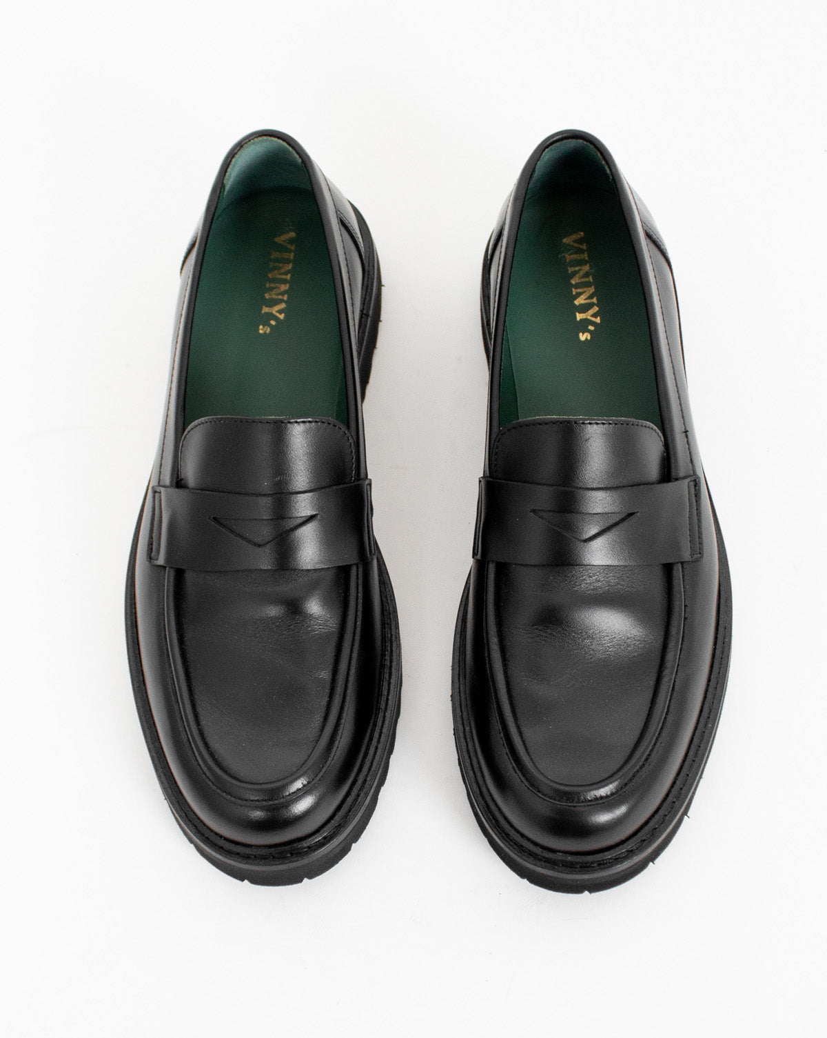 Richee Penny Loafer fra Vinny's er en klassisk, håndlaget loafer i lær som blir mer smidig med hver bruk. De er utstyrt med slitesterke såler. Denne penny loaferen har en rund tå i nappaskinn og en lett gummisåle.