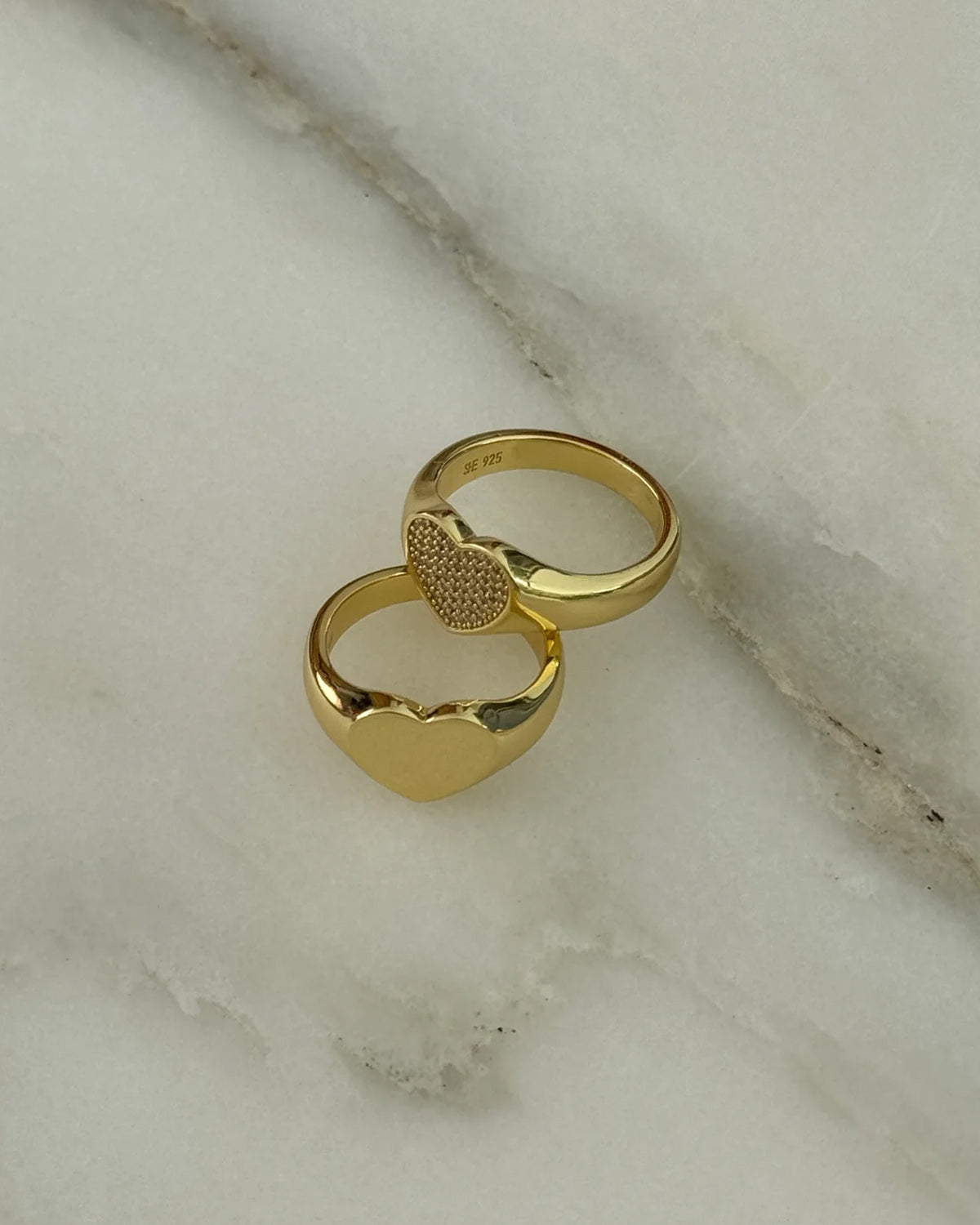 Hjertering i gullbelagt 925 sølv. Gravert SHE på innsiden.