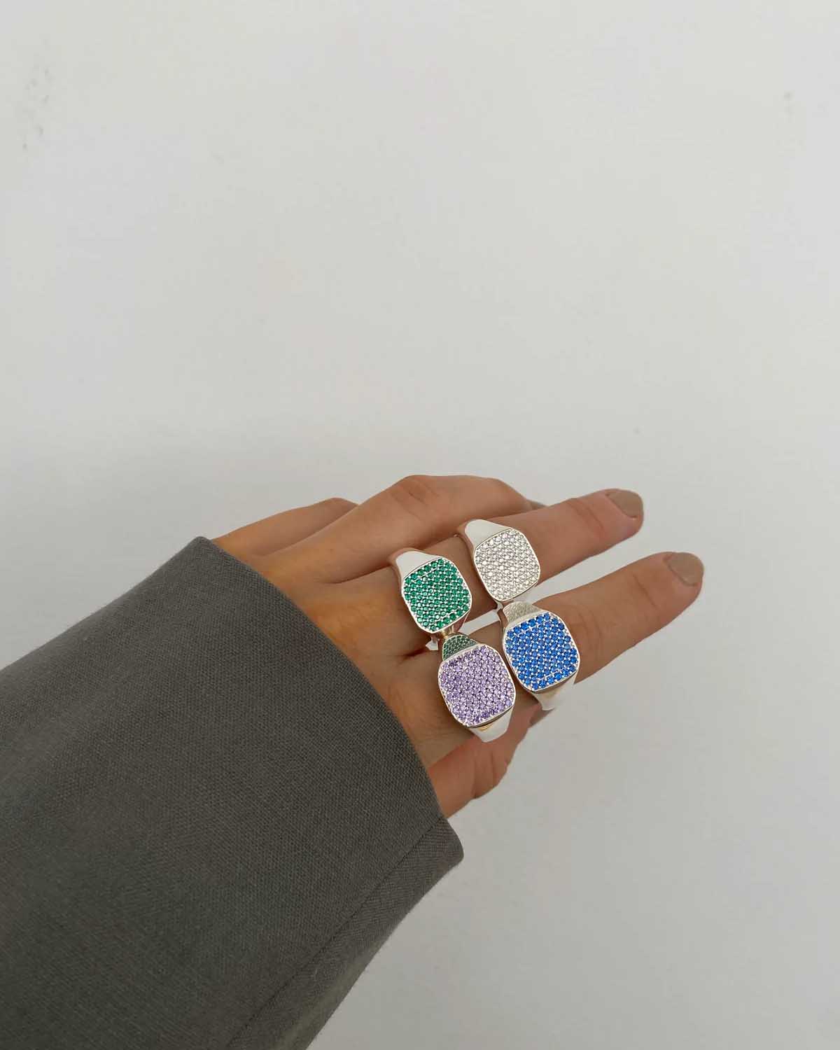 Den tøffeste ringen fra norske Who is She i trendy grønn! Sour Signet Ring er en statement-ring i solid sølv med glitrende stener. Ringen gjør seg godt alene, men er også kul å kombinere med andre ringer og smykker. Superfin gave til deg selv eller noen du er glad i!