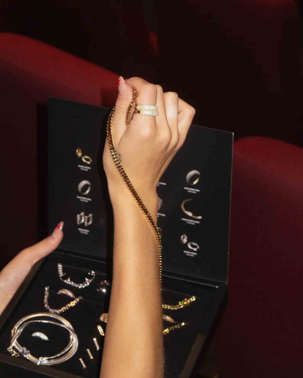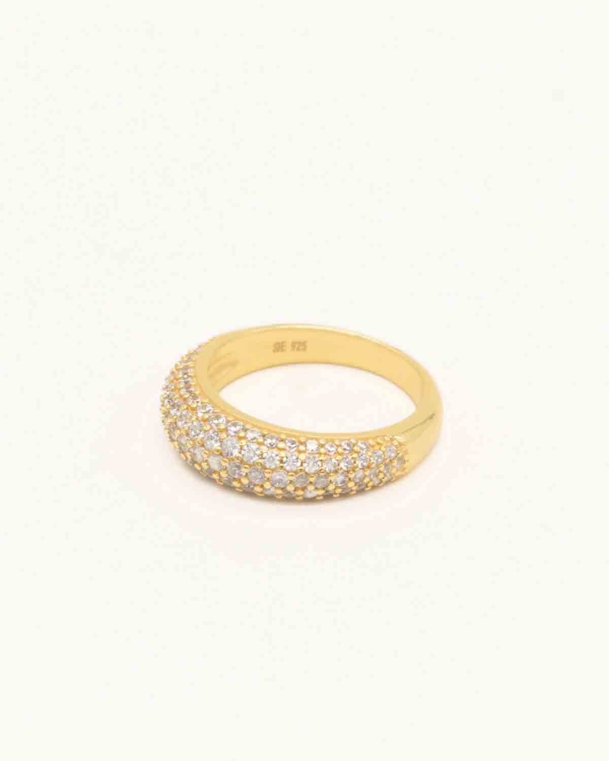 Ring i solid 925 sølv, med en topp dekket av skinnende Zirconia steiner og gravert SHE på innsiden. Ringen er superfin alene, men også kul i kombinasjon med andre ringer.