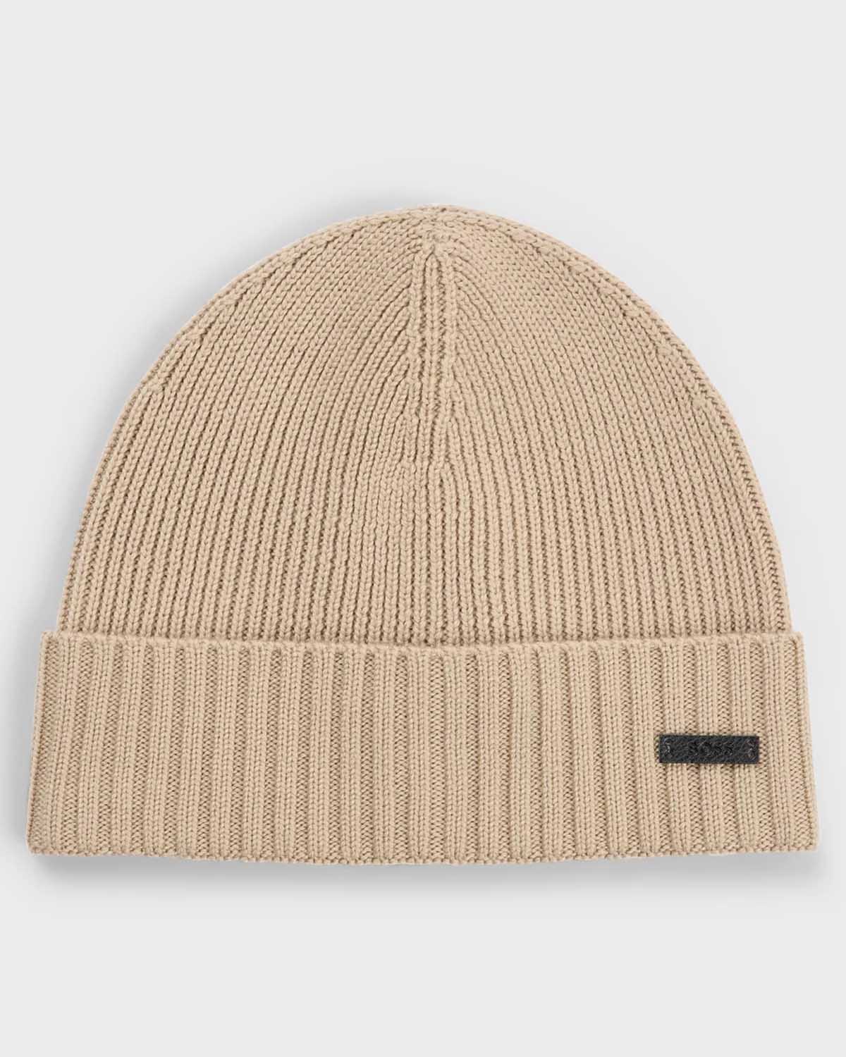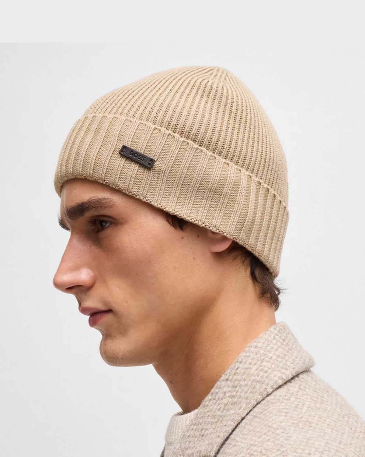 Lue med logoetikett i syntetisk belagt stoff fra BOSS. Denne luen er strikket med ribbestruktur i mykt garn. Syntetisk belagt stoff, noen ganger referert til som kunstskinn, er et stoff designet for å ligne ekte lær, og/eller vise et matt, blankt, glatt eller teksturert, belagt utseende.
