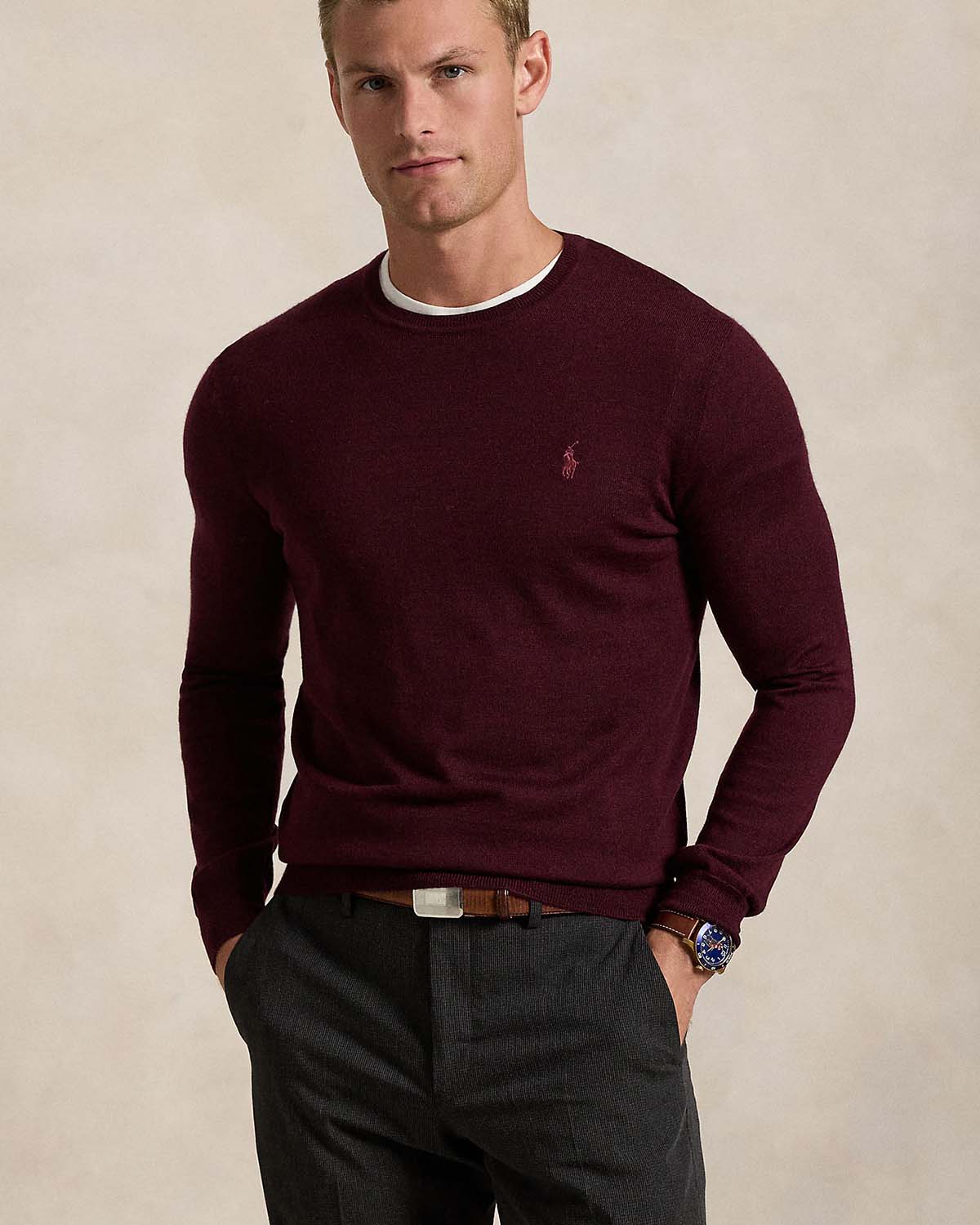 Denne lette genseren er ferdig med vår signaturbroderte ponni, og er finstrikket med ullgarn fra Italia som kan vaskes i maskin og kamgarn for en jevn tekstur.