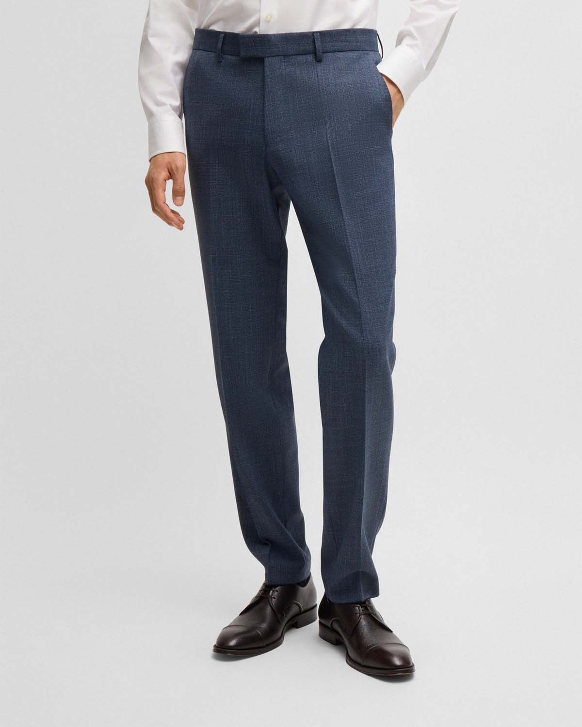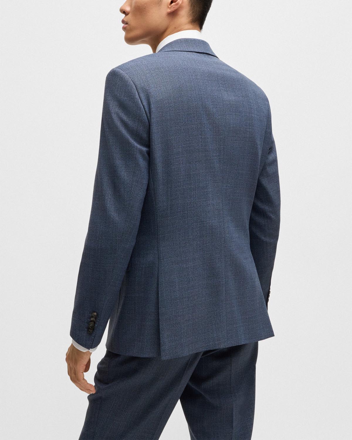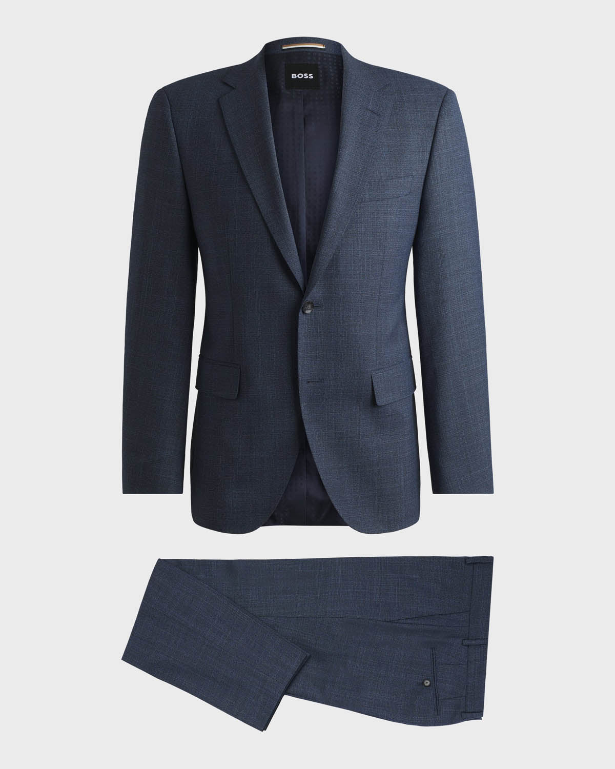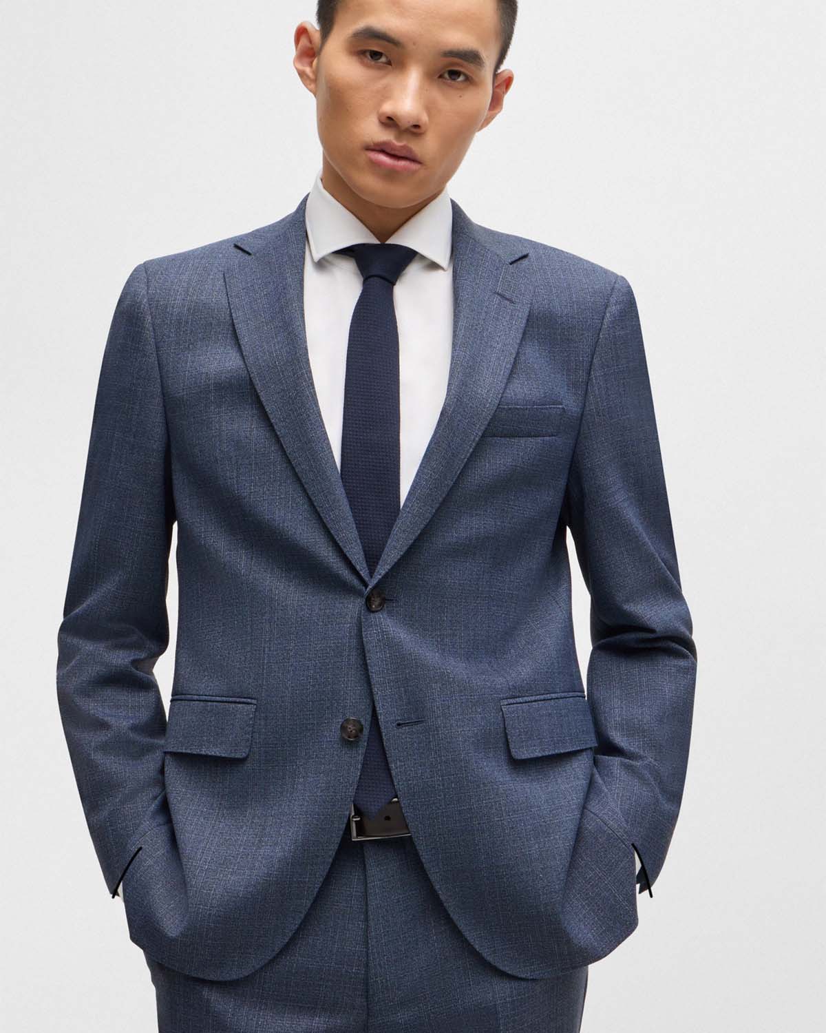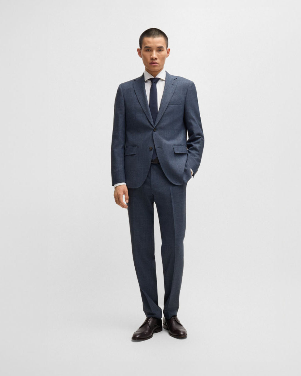 En moderne dress fra BOSS, skåret til en normal passform. Laget i stretchstoff blandet med fyldig virgin ull, er dette elegante ensemblet vevd med et mikromønster for allsidig styling. Denne todelte dressen er ferdig med signaturfôr.