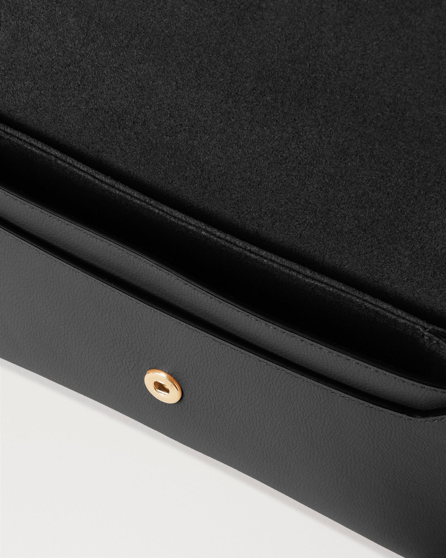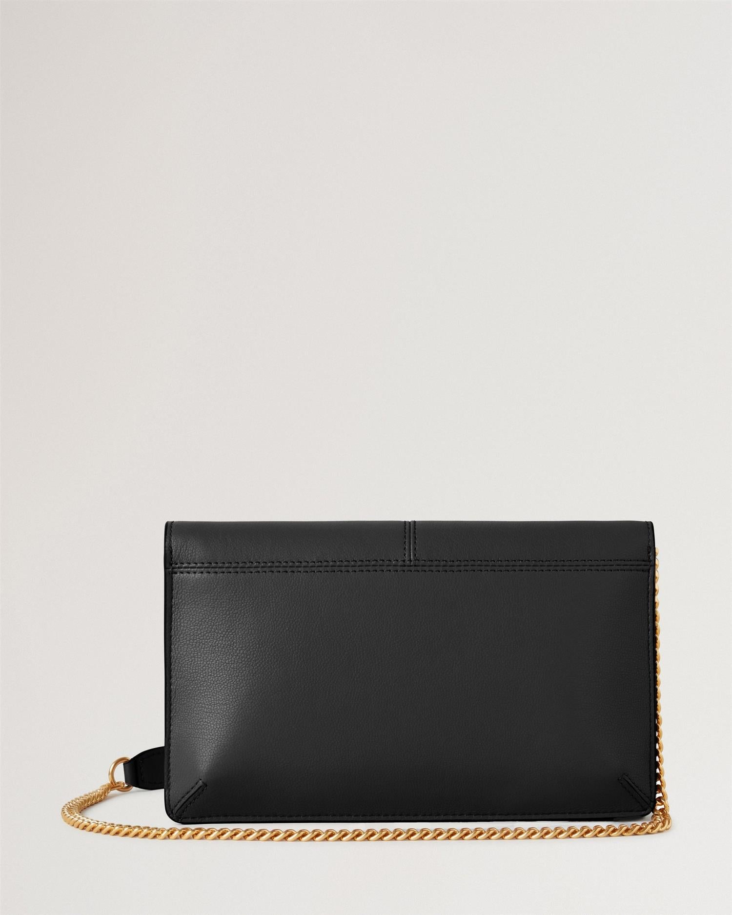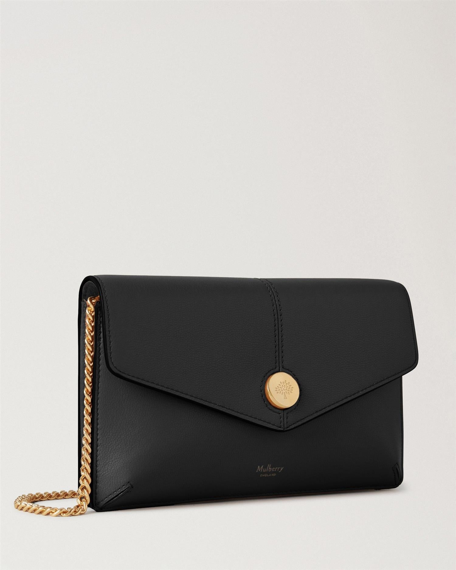 Mulberry sin Press stud Pochette on Chain i sort tilbyr trippel bruk, både som en elegant crossbody med kjede i full lengde, en skulderveske med forkortet kjede, eller som en elegant clutch uten kjede i det hele tatt.
