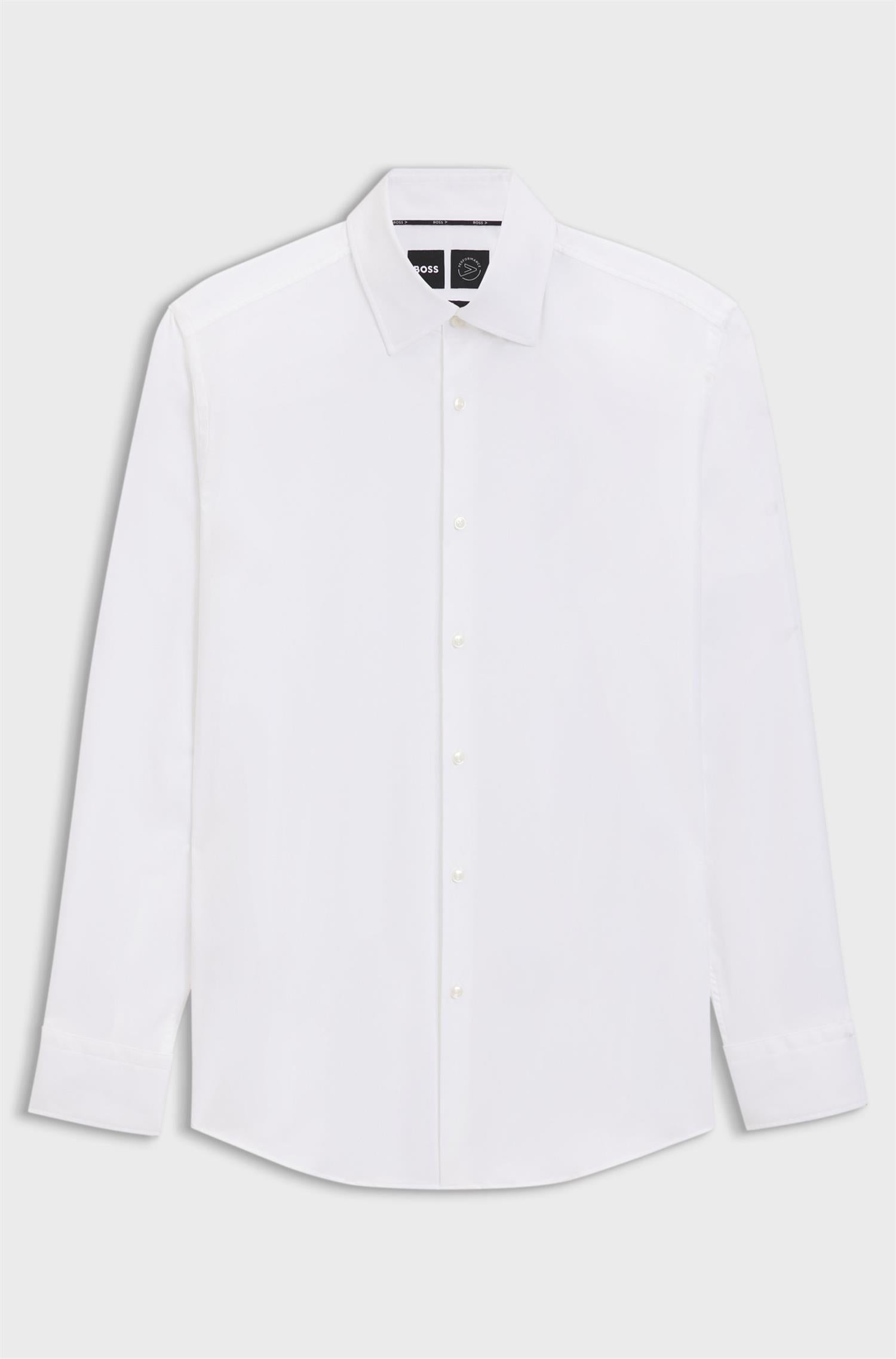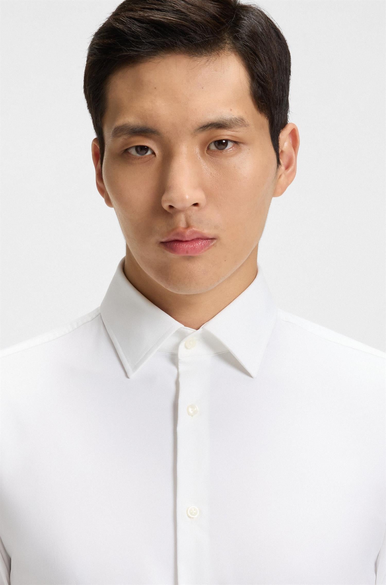 Denne BOSS Menswear-skjorten er uunnværlig for travle profesjonelle, og er laget av høypresterende stretch-twill. Skreddersydd for en moderne slim fit.