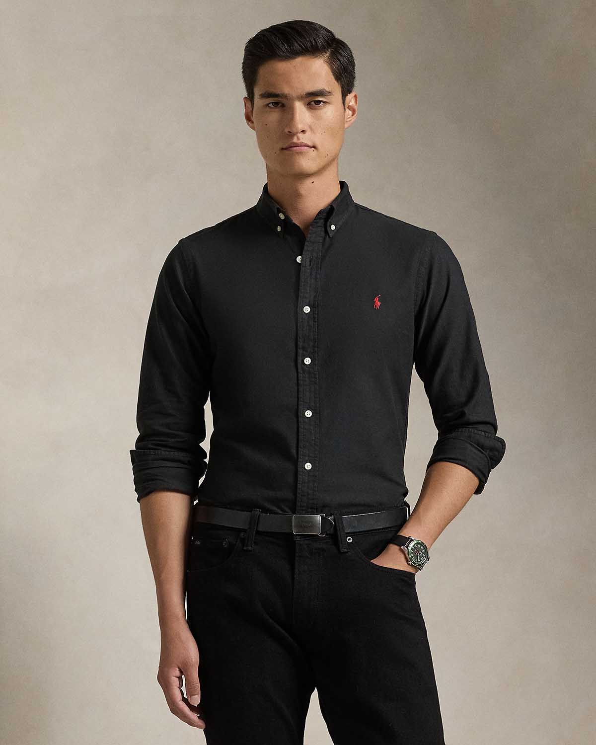 Svart slimfit bomullsskjorte fra Polo Ralph Lauren.