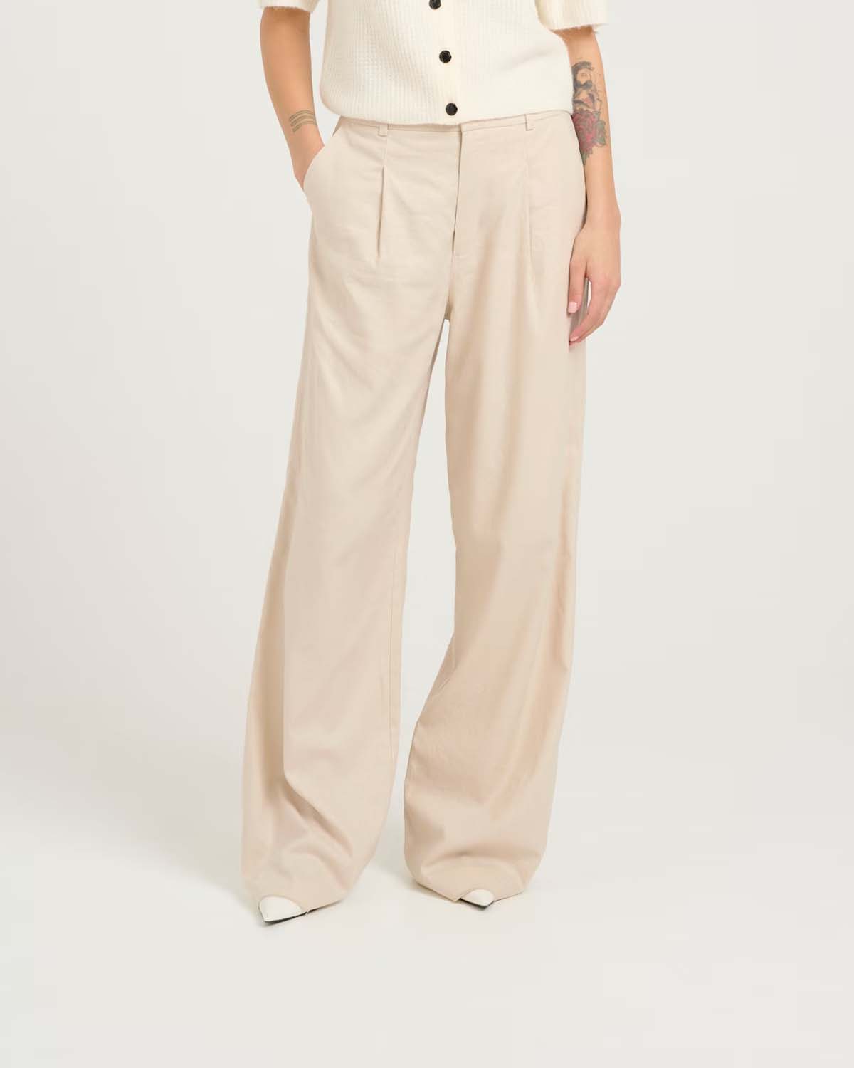 Lang regular fit bukse i linblanding fra Gestuz.