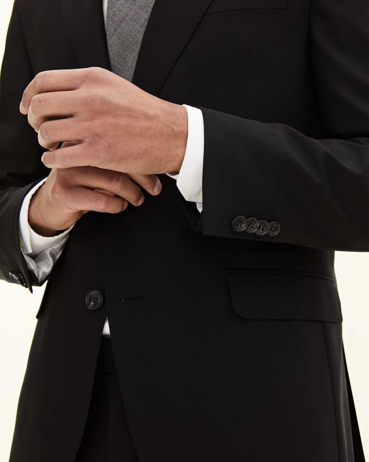 Enkeltspent blazer i normal passform med fôret innside, supermyke skulder- og klafflommer. Laget av en super 120 ull fra Italia.