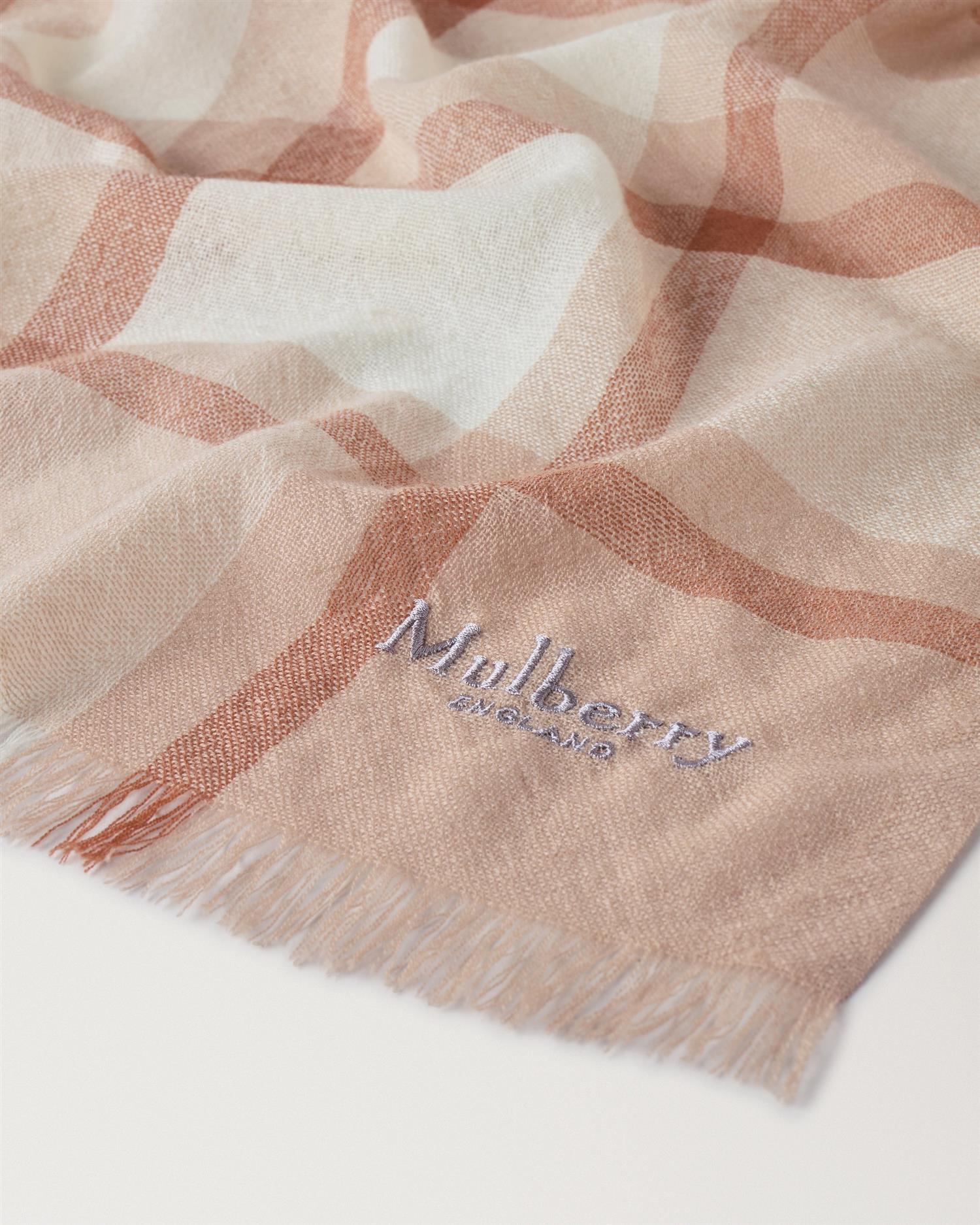 Mulberry Mega Check skjerf viser frem deres tidløse Mulberry-rute, her i en tynn, lett ull og kashmir blanding. Perfekt til kjølige sommerkvelder og i overgangen mellom sesonger. Kan brukes både til hverdags og fest.