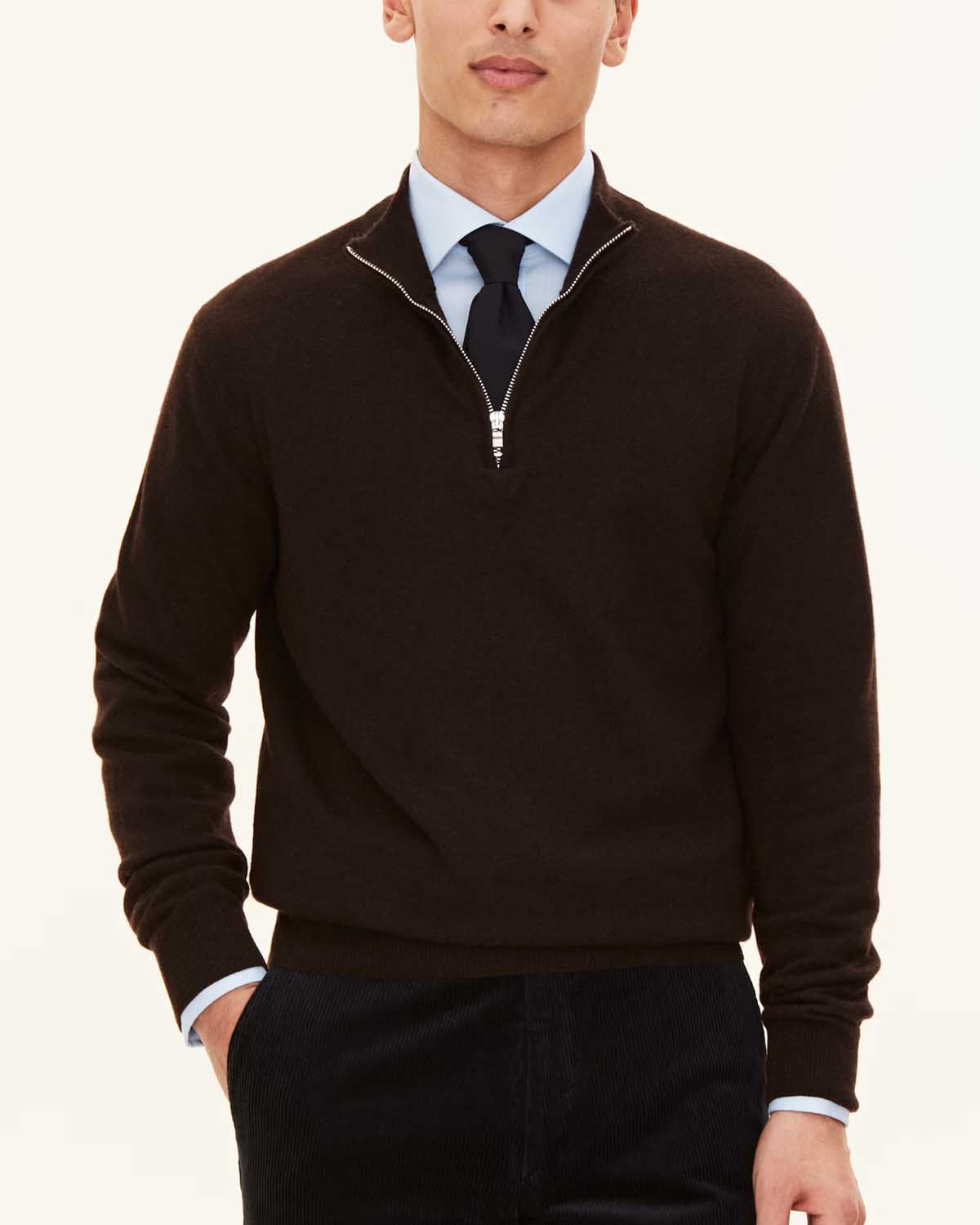 Langermet genser fra Oscar Jacobson i half zip-modell laget av myk ull og kasjmir.