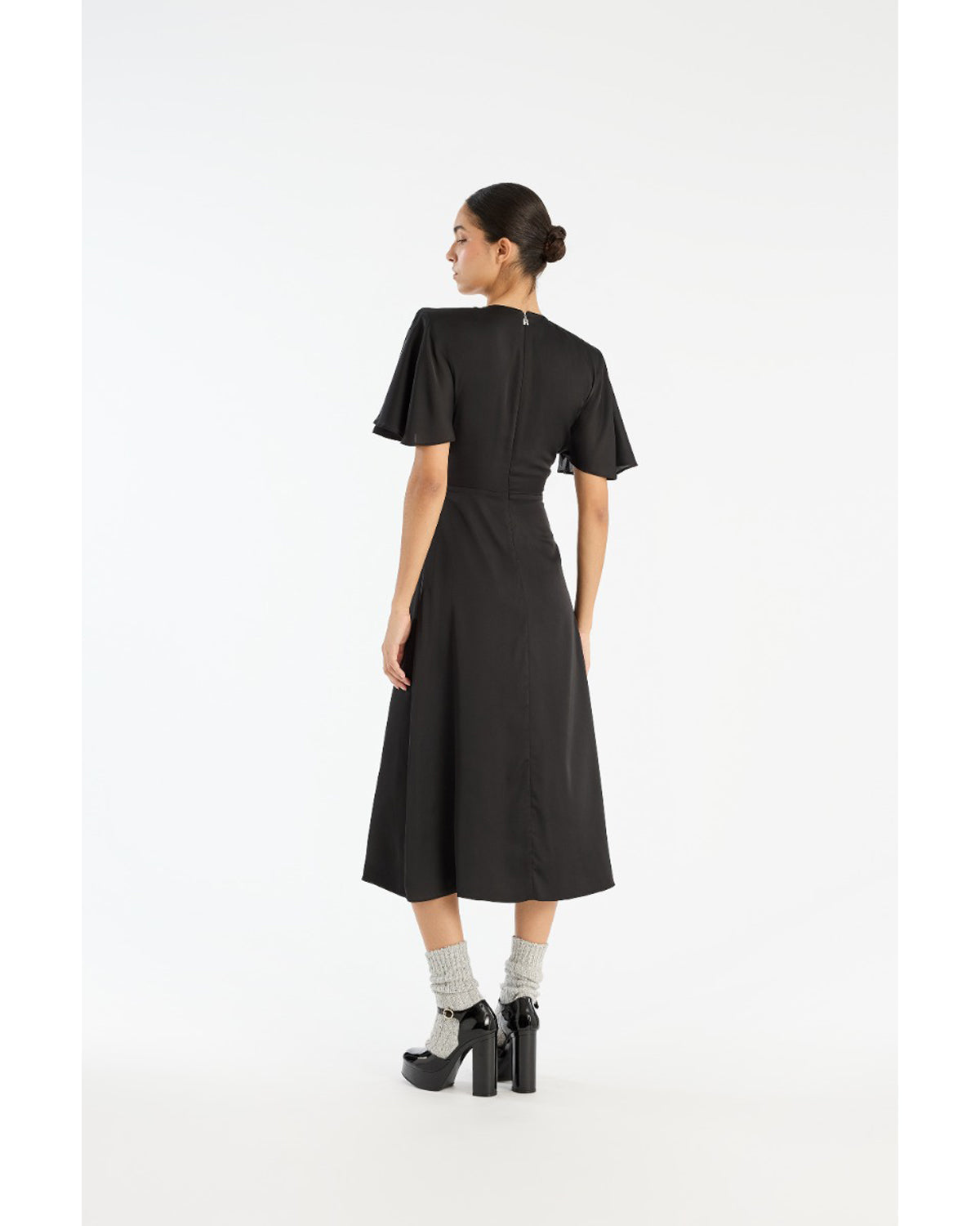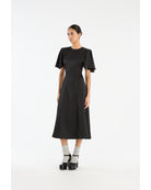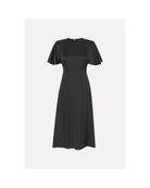 Chiffon Midi-kjolen i svart har rund hals og mykt utsvingte korte ermer.