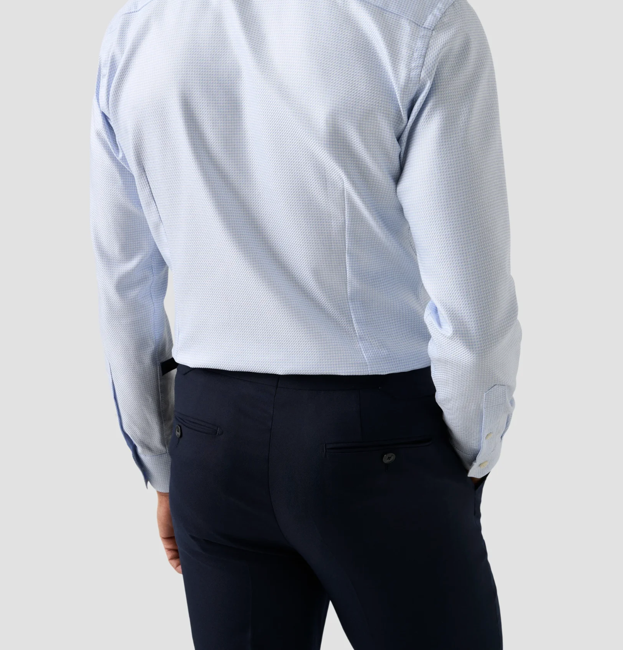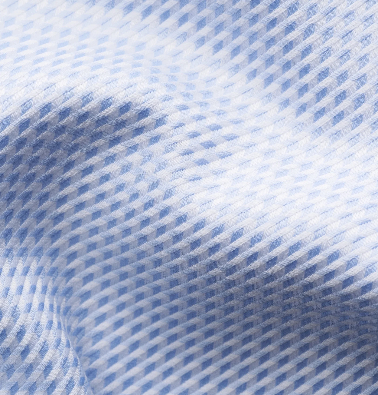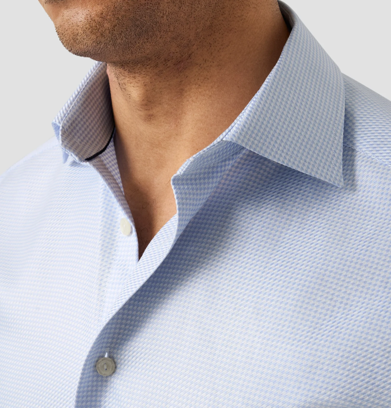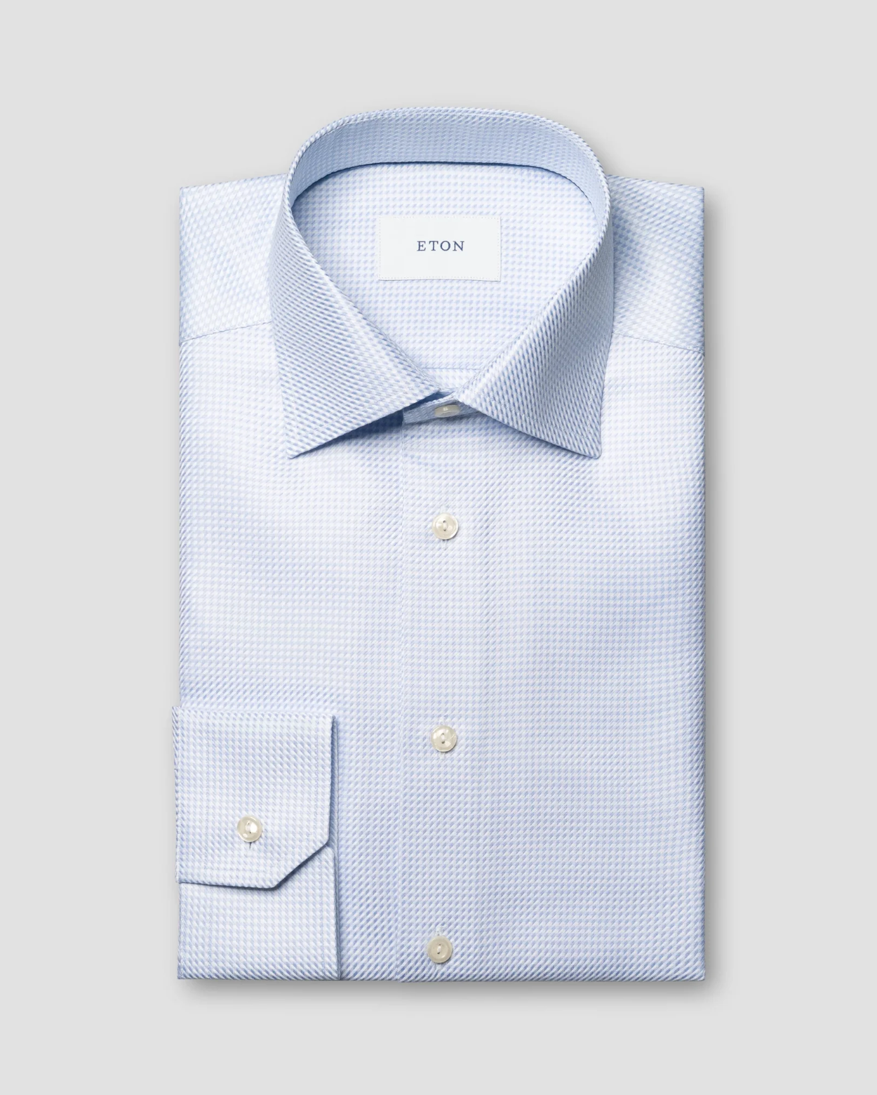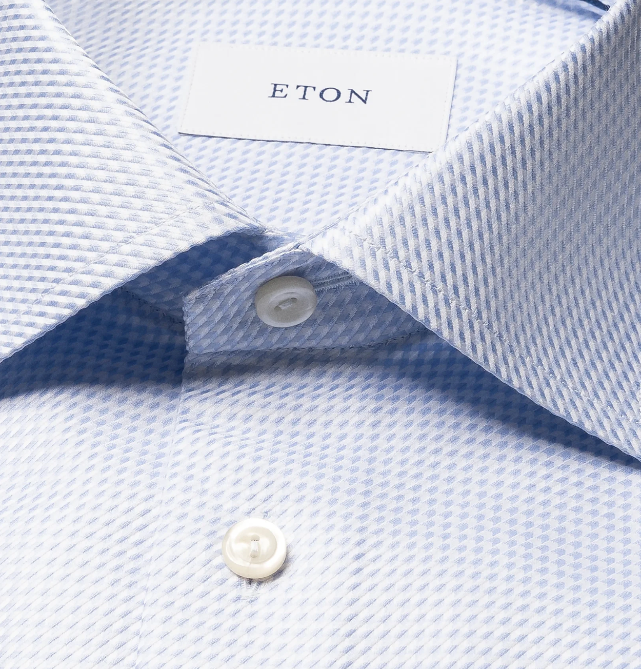 Eton skjorte i en rik, skinnende og luksuriøs tekstur. Dette er kongelig skjorte, vevd av dobbelt to-lags bomullsgarn i et svært komplekst, teknisk mønster med en naturlig 3D-effekt.