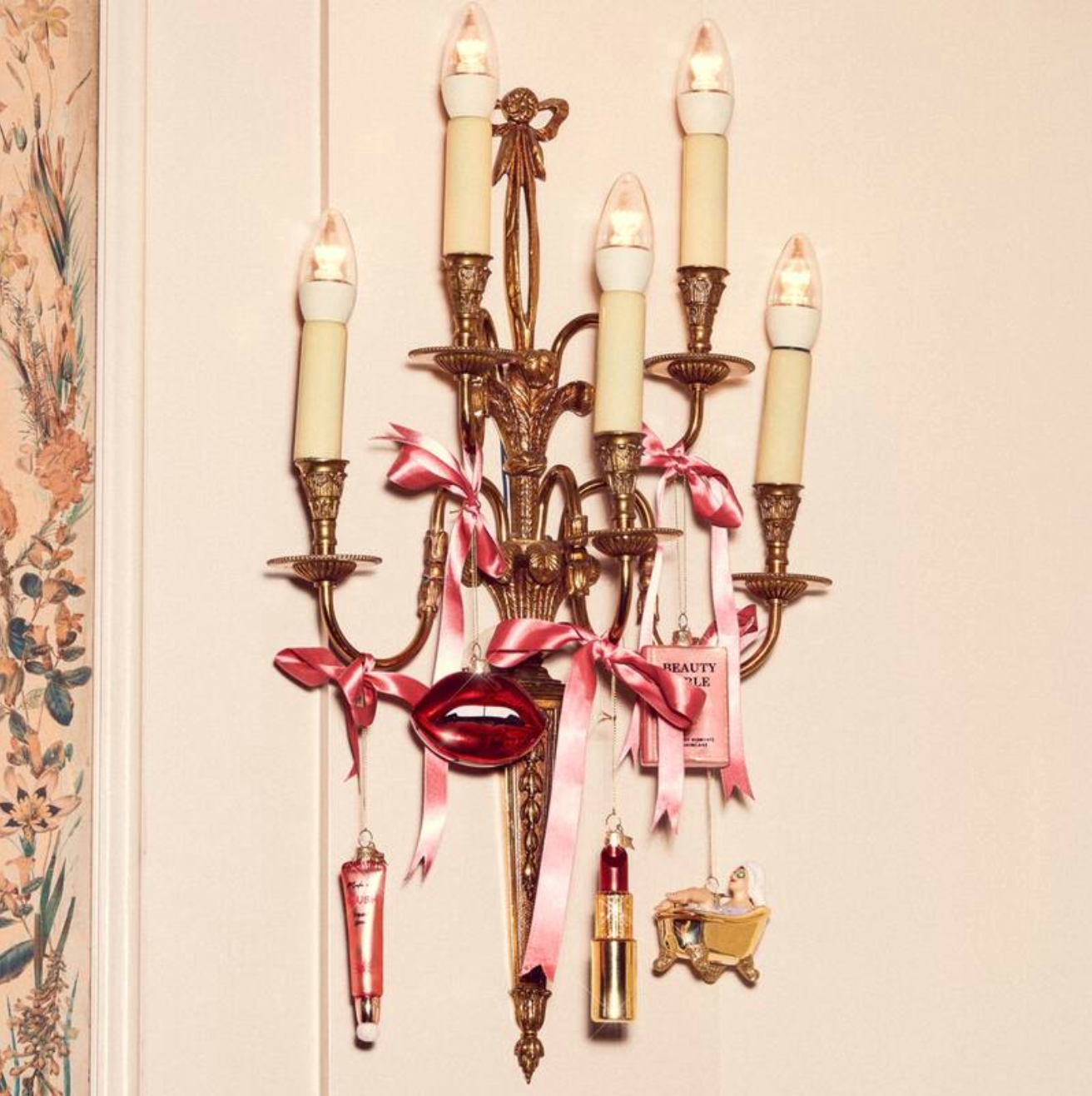 Ornament glass shiny gold/ matt red pink lipstick H11cm