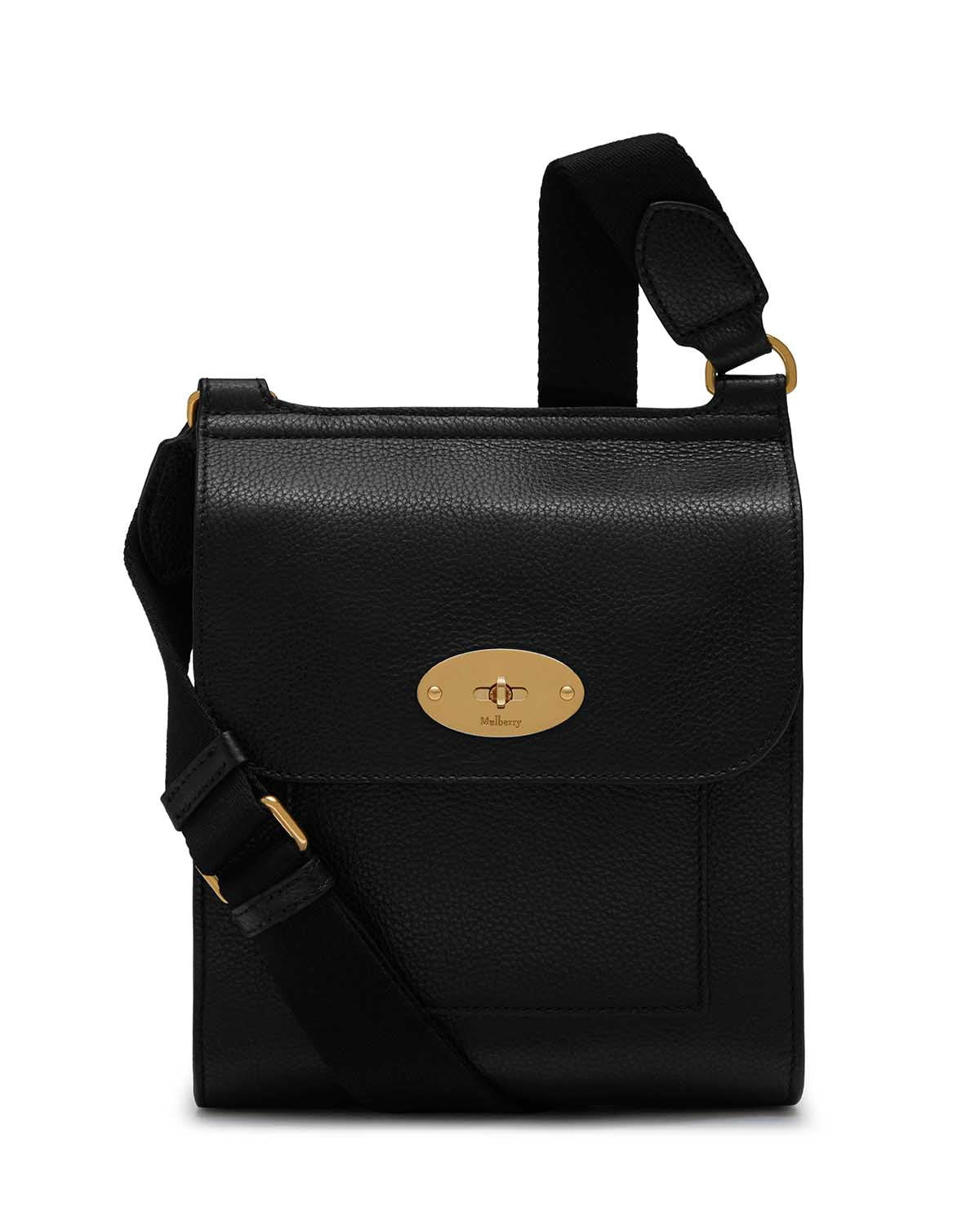 Small Antony Black Small Classic Grain er en unisex veske fra Mulberry, og er den minste vesken i Antony-serien. Vesken kommer med en justerbar reim og jan brukes over skulderen eller som crossbody.