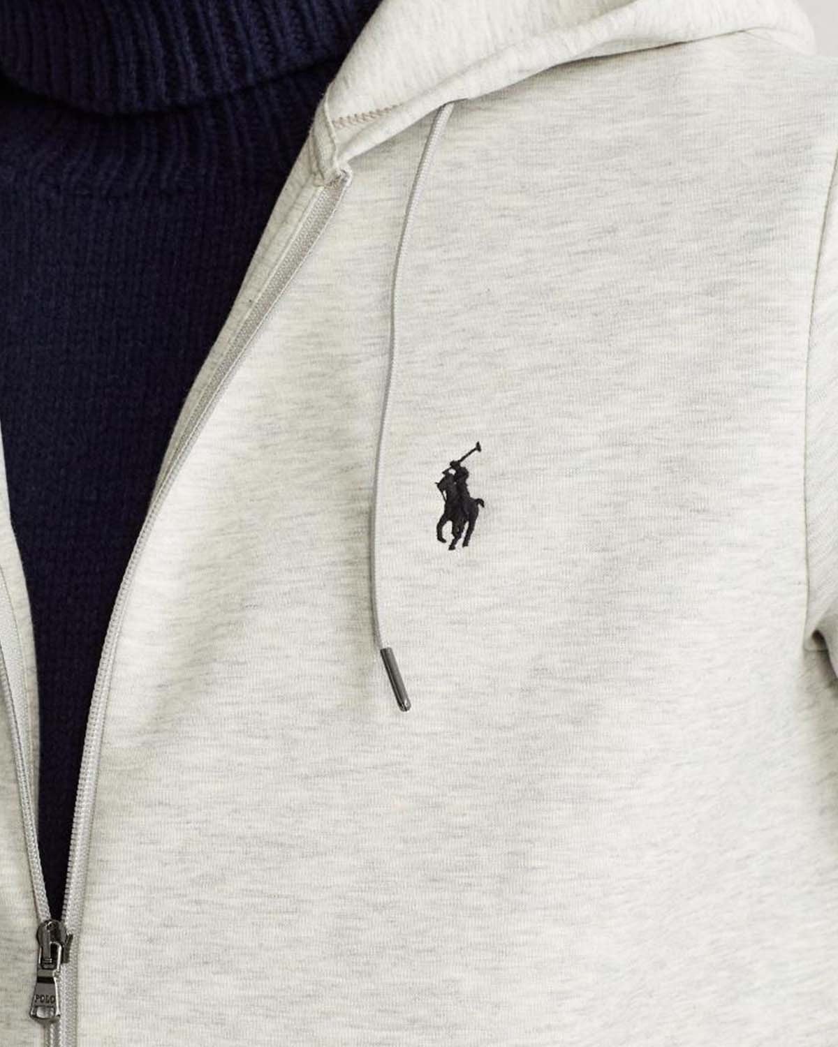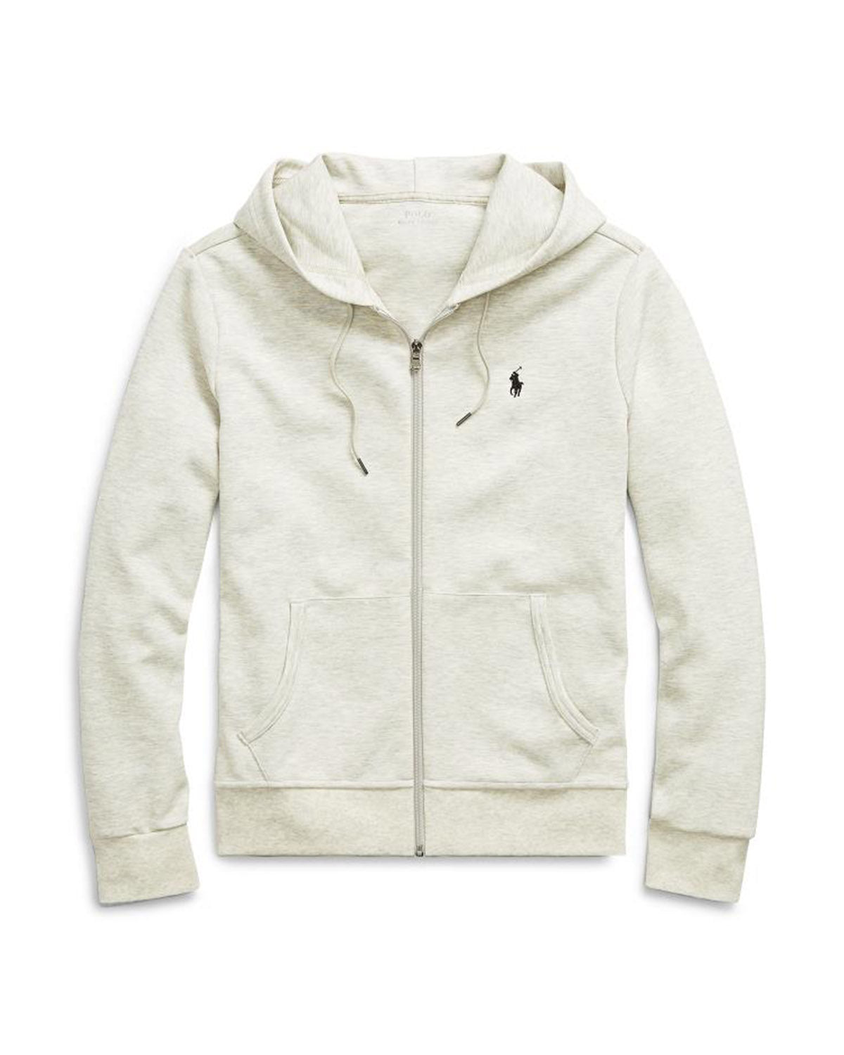 Grå hettegenser med glidelås i myk bomull fra Polo Ralph Lauren. Double-Knit Full-Zip Hoodie har praktiske lommer foran og fullføres av den velkjente polospilleren brodert på brystet.