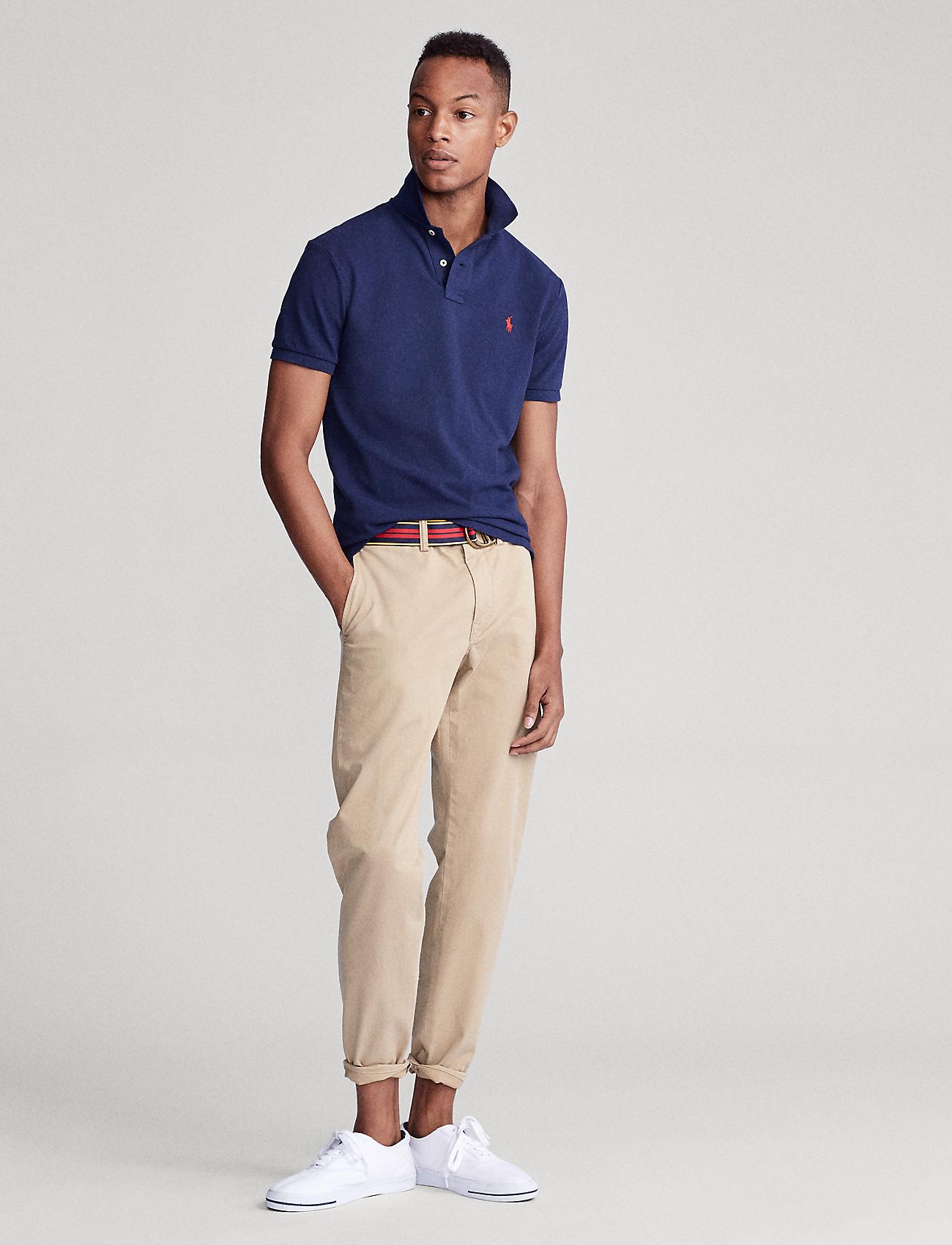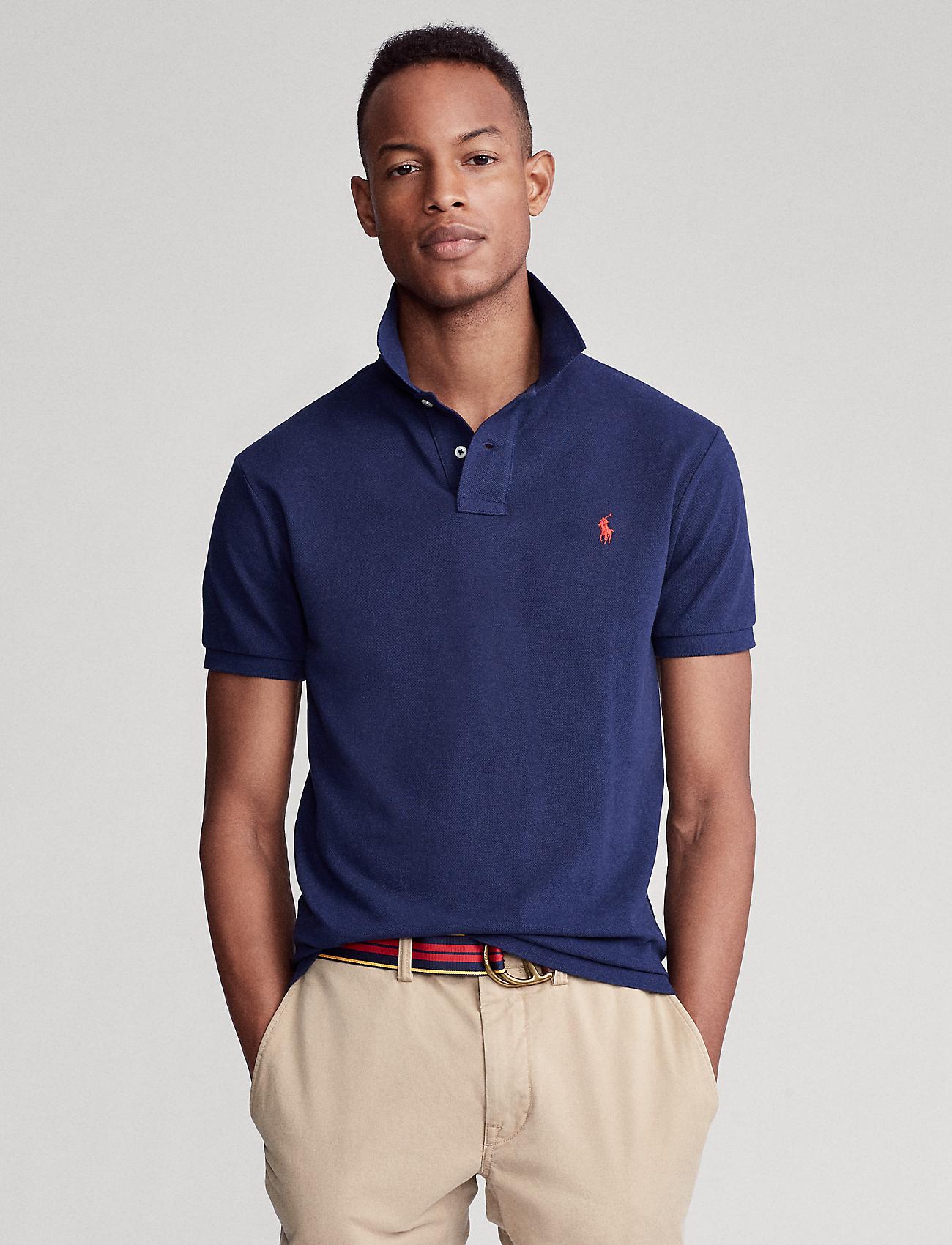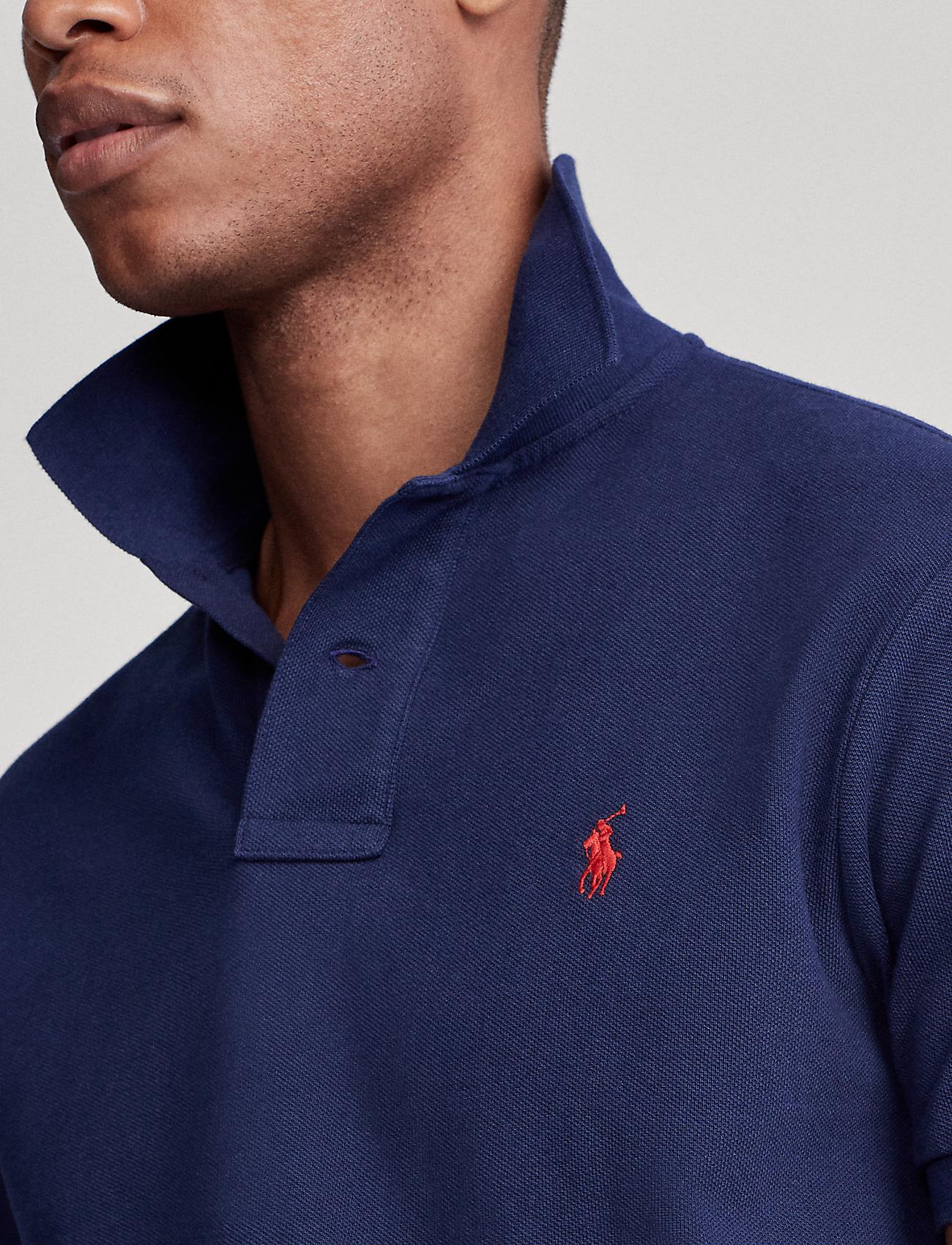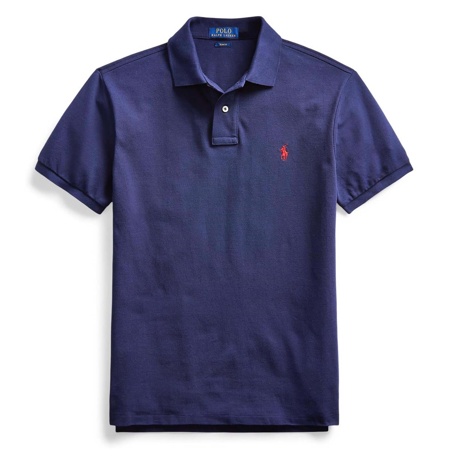 Klassisk blå t-skjorte med den kjente polospilleren brodert i rødt på brystet.
