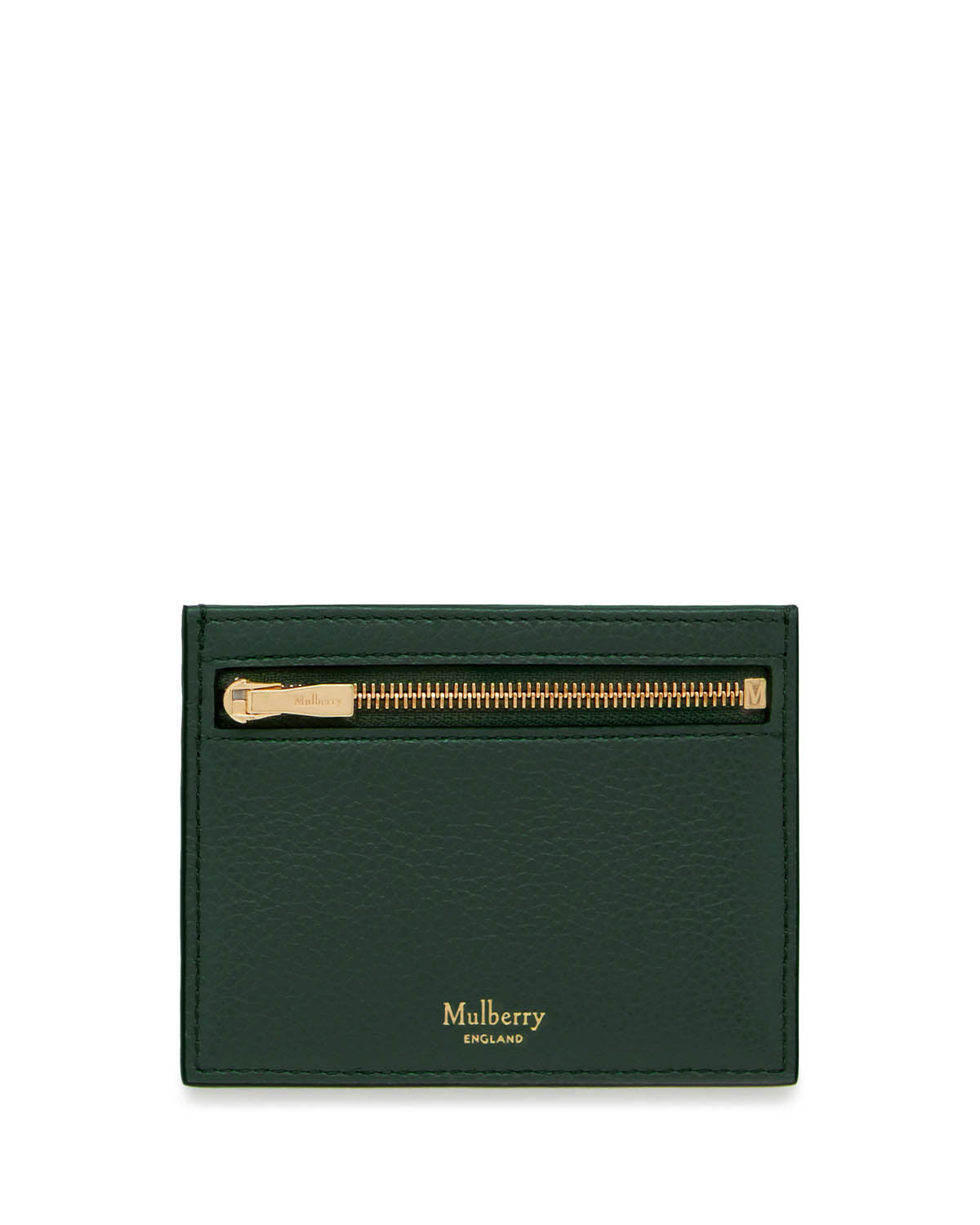Grønn kortholder med gullfargede detaljer fra Mulberry! Zipped Credit Card Slip Mulberry Green er en stilren lommebok med tre rom til kort samt én glidelåslomme til mynter. Kortholderen fullføres av liten logodetalj.