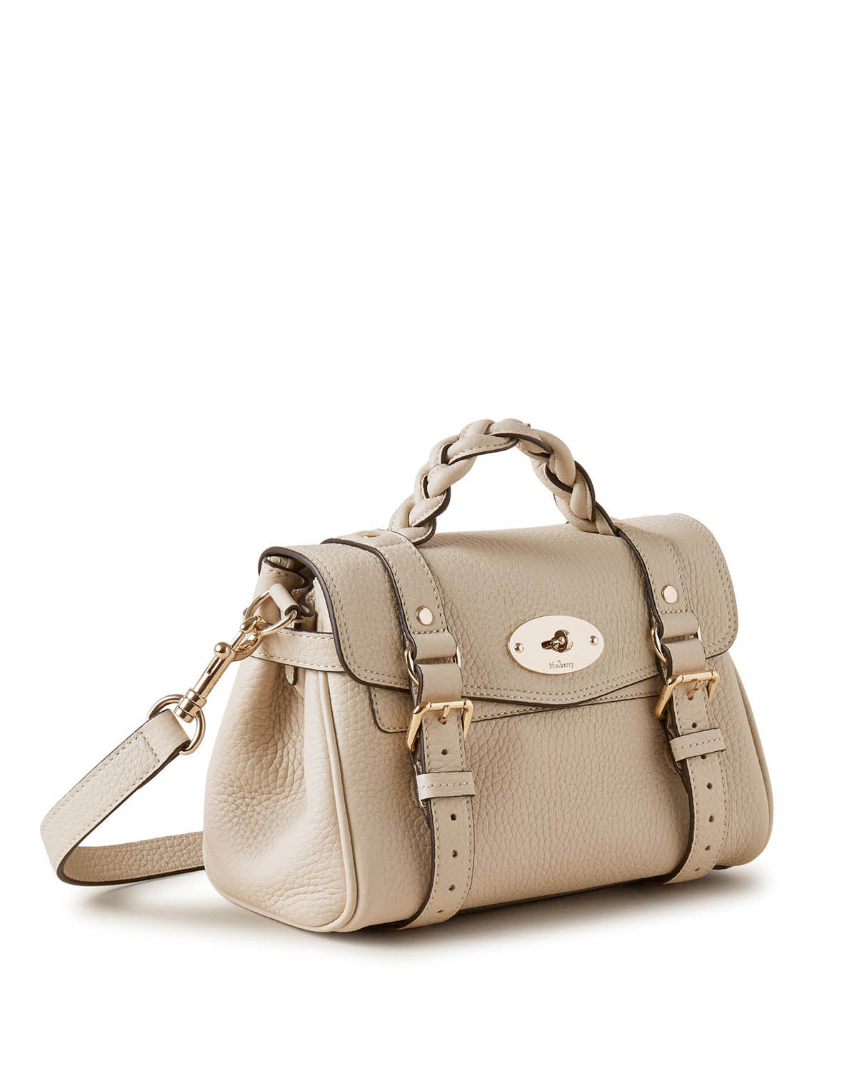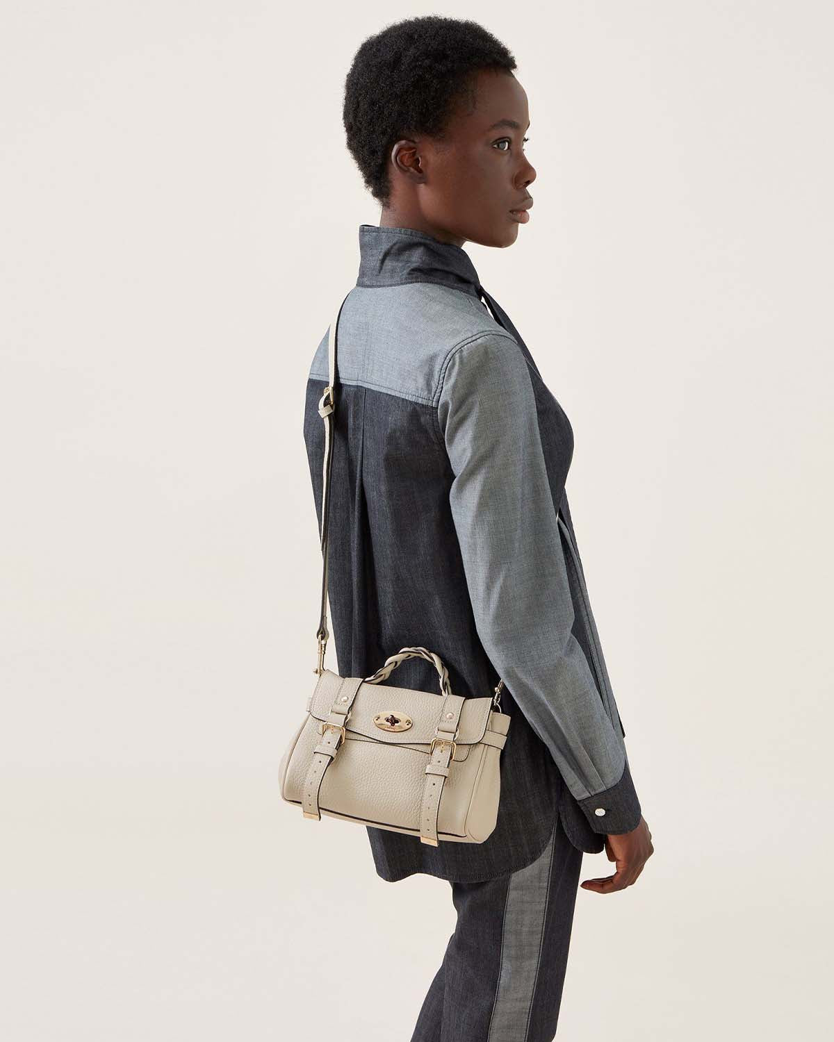 Mini Alexa i Chalk er perfekt til hverdagens bruk hvis du bare trenger det nødvendigste. Vesken kan bæres cross-body, har den velkjente Postman's Lock samt flettet håndtak.