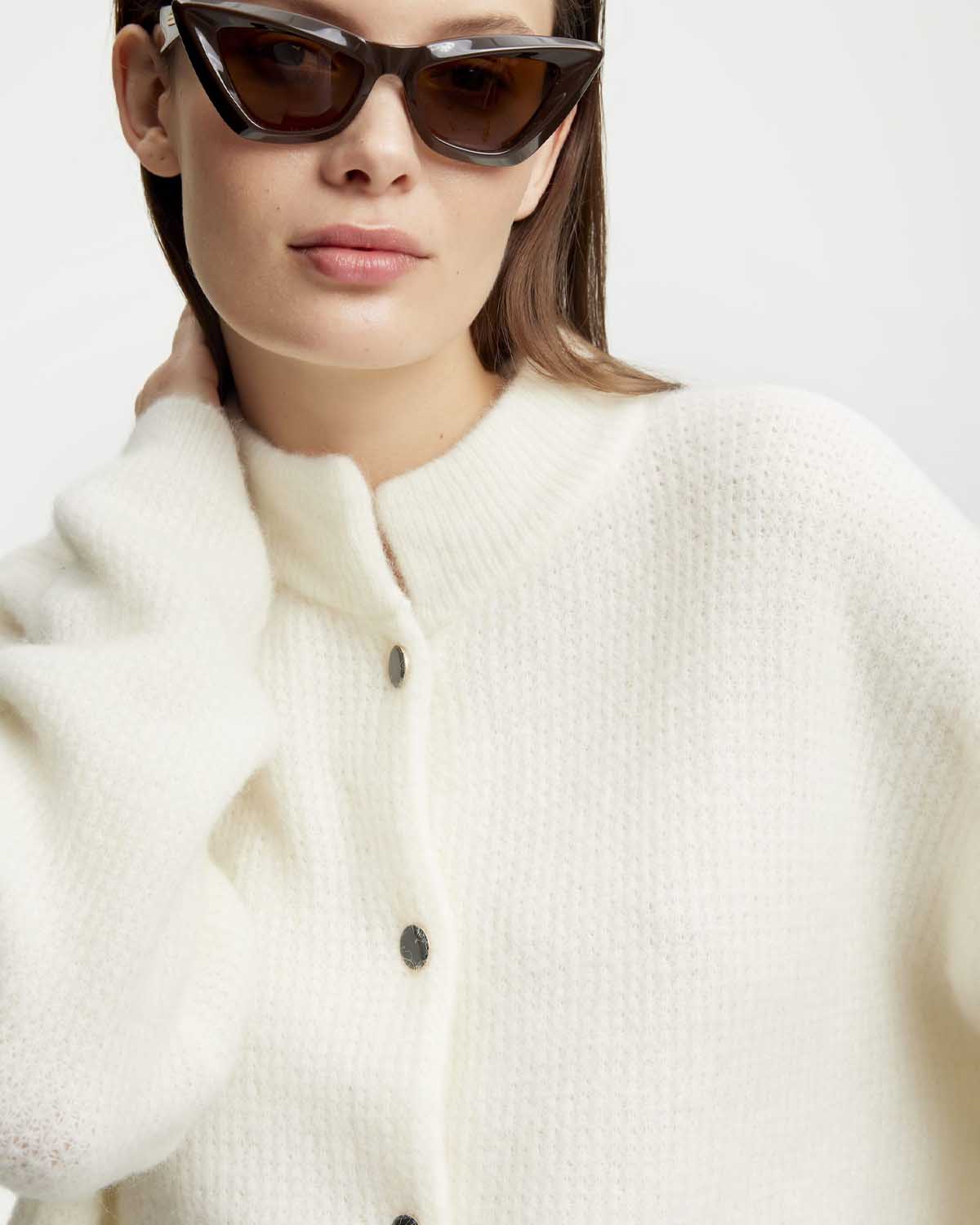 Favoritten fra Gestuz i nydelig hvit! AlphaGZ Short Cardigan er en myk og deilig strikkejakke i blanding med ull og alpakka. Fargetonen "Ivory" er en stilren og tidløs hvit som enkelt kan styles til andre plagg. Like fin til jeans i hverdagen som over sommerkjolen på kjølige kvelder!