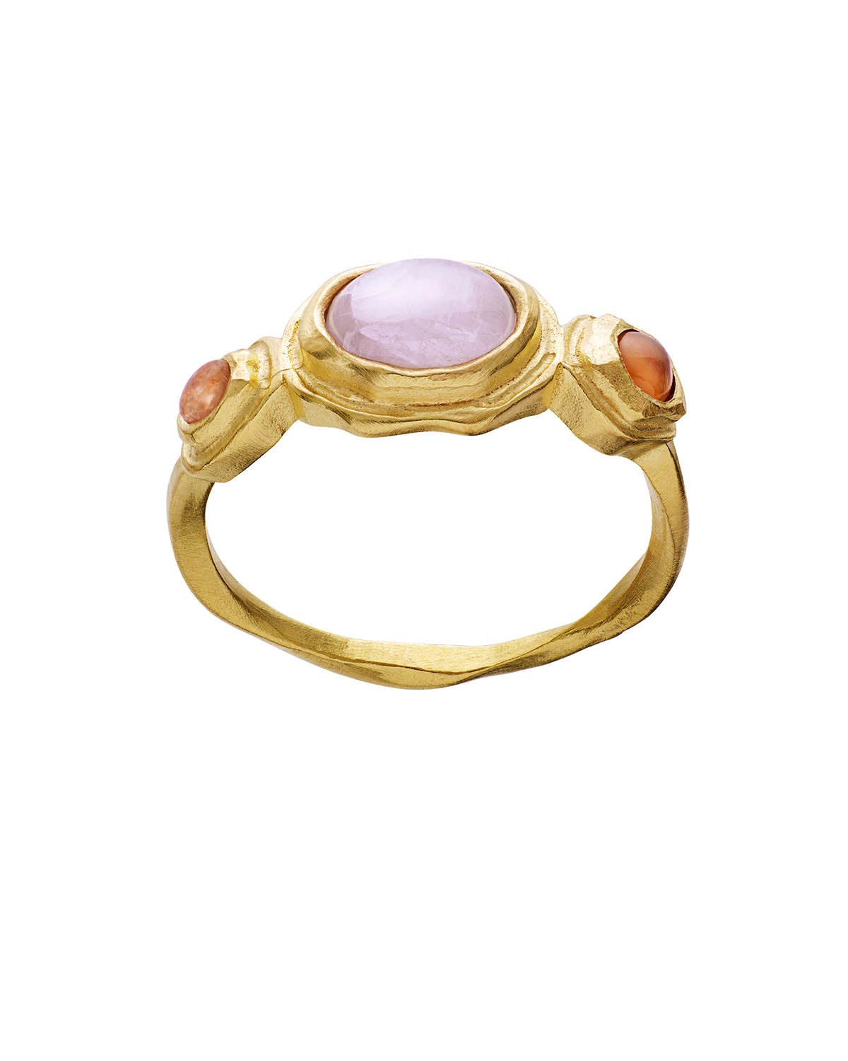 - Resirkulert sterlingsølv (925) belagt med 18 karat gull, kunzite, solstein og rød onyx.