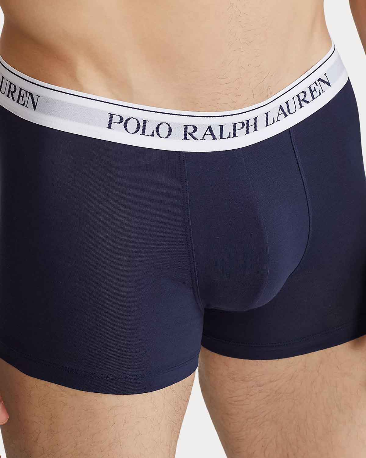 Mørkeblå boksere fra Polo Ralph Lauren. 3 PK Trunk er en pakke med tre myke boksere. Bokseren har stretch i seg for mer komfort og har en elastisk kant med signaturen "Polo Ralph Lauren".