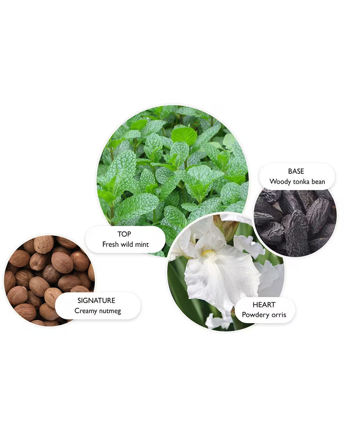 Parfyme fra Molton Brown. En sofistikert, frisk eau de parfum; vill mynte, forankret av urteaktig lavandin – en potent lavendeltype, bærekraftig hentet fra Provence – mens varm orrisrot og kremet muskatnøtt gir moderne eleganse.